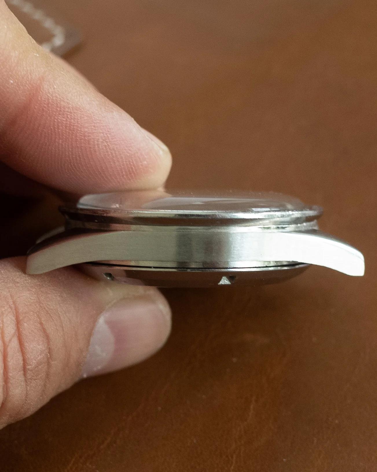 Case: Correct, straight lug case has been previously polished and shows signs of wear, but still retains its shape with thick and even lugs