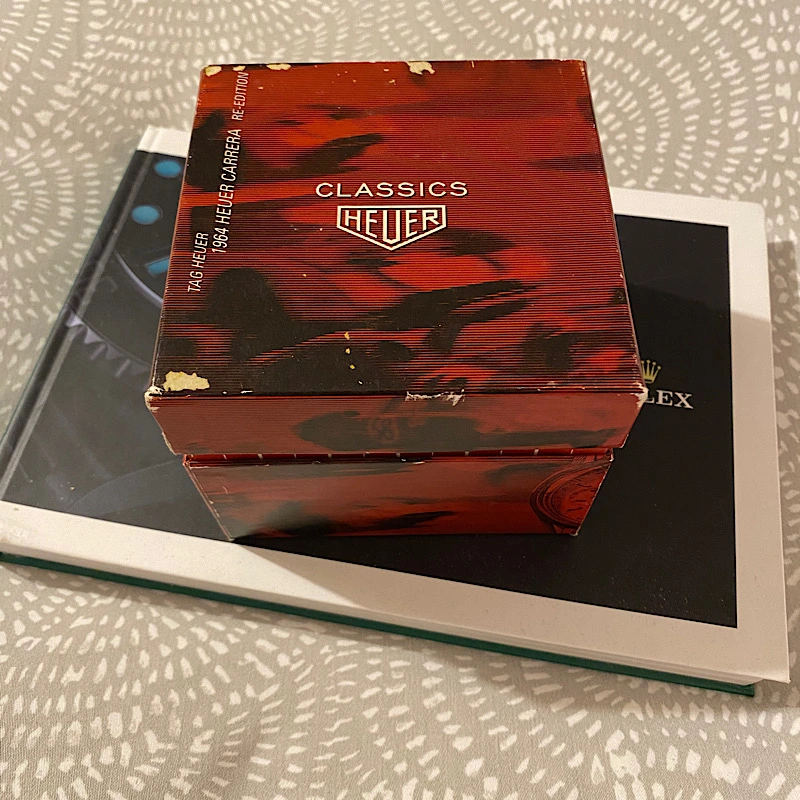 This is the stunning late 90s re-edition of the famous 1960’s chrono. Using the same 36mm case dimensions as the original with 18mm lugs, plexi crystal but with the legendary Lemania 1873 movement (of Omega Speedmaster fame). If you have a sharp eye, the only visual difference from the 60s original is the lack of the Word Carrera on the dial. The watch comes with inner and outer boxes and card, eBay authentication and appears unpolished with some fine hairlines commensurate with its age and its original Heuer buckle on a lovely newer leather strap. Timekeeping and chronograph working as expected. A truly lovely watch and incredible value. £2850 gbp via bank transfer. No returns.