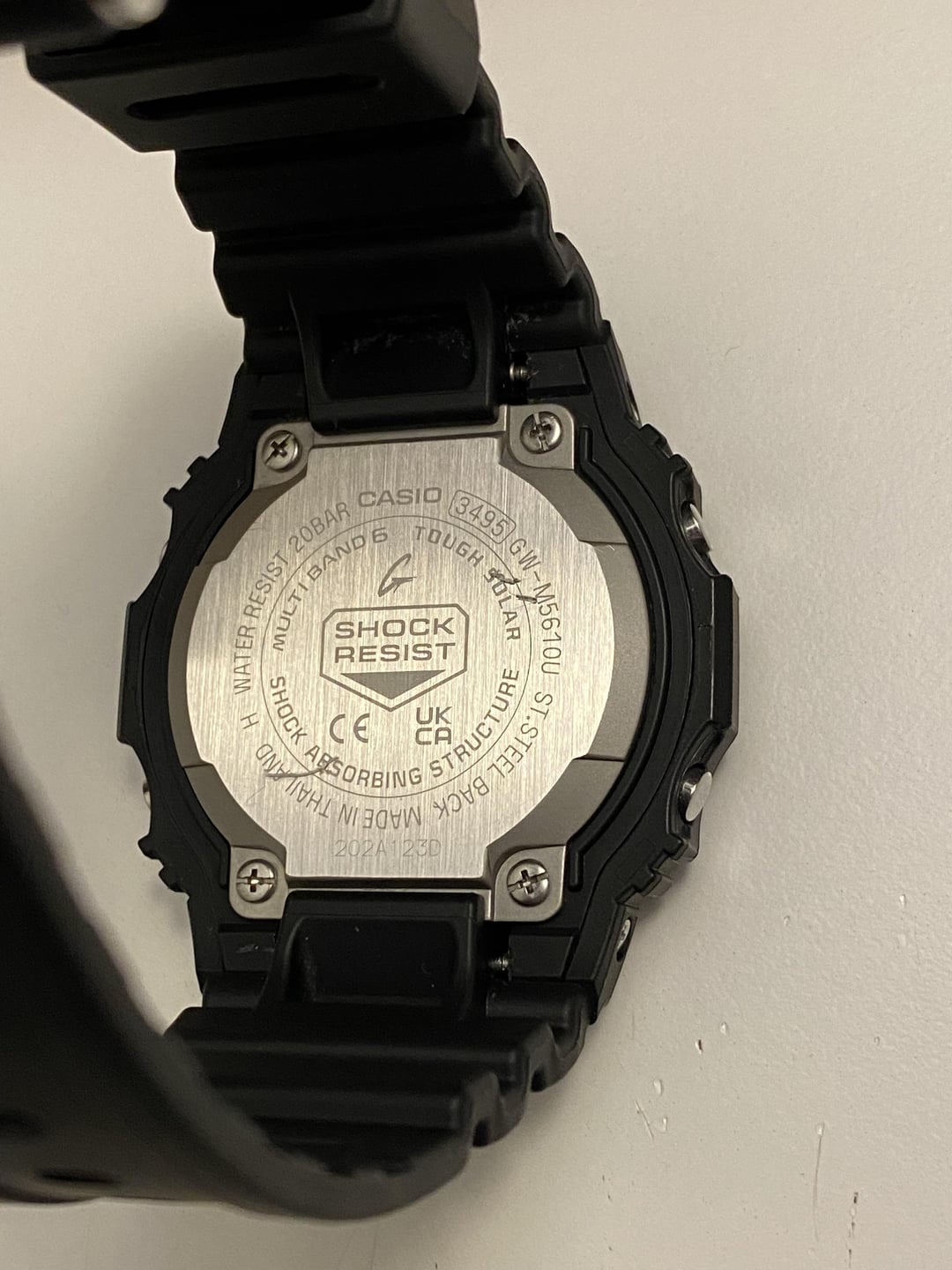 For sale is my Casio G-Shock GW-M5610U-1BJF. Watch is in overall great working condition. Only items to note are (1) a very small, almost unnoticeable, ding/scratch on the crystal just below the seconds counter. Very hard to capture it in a photo. (2) some deeper scratches on the caseback as pictured. Comes as watch only. Asking $99 shipped (CONUS). Will accept PayPal F&F or Zelle. Thanks!