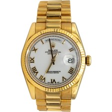 | Rolex Day-Date President 18k Yellow Gold White Roman 36mm 118238 Watch collectorslynbrook (4684) |