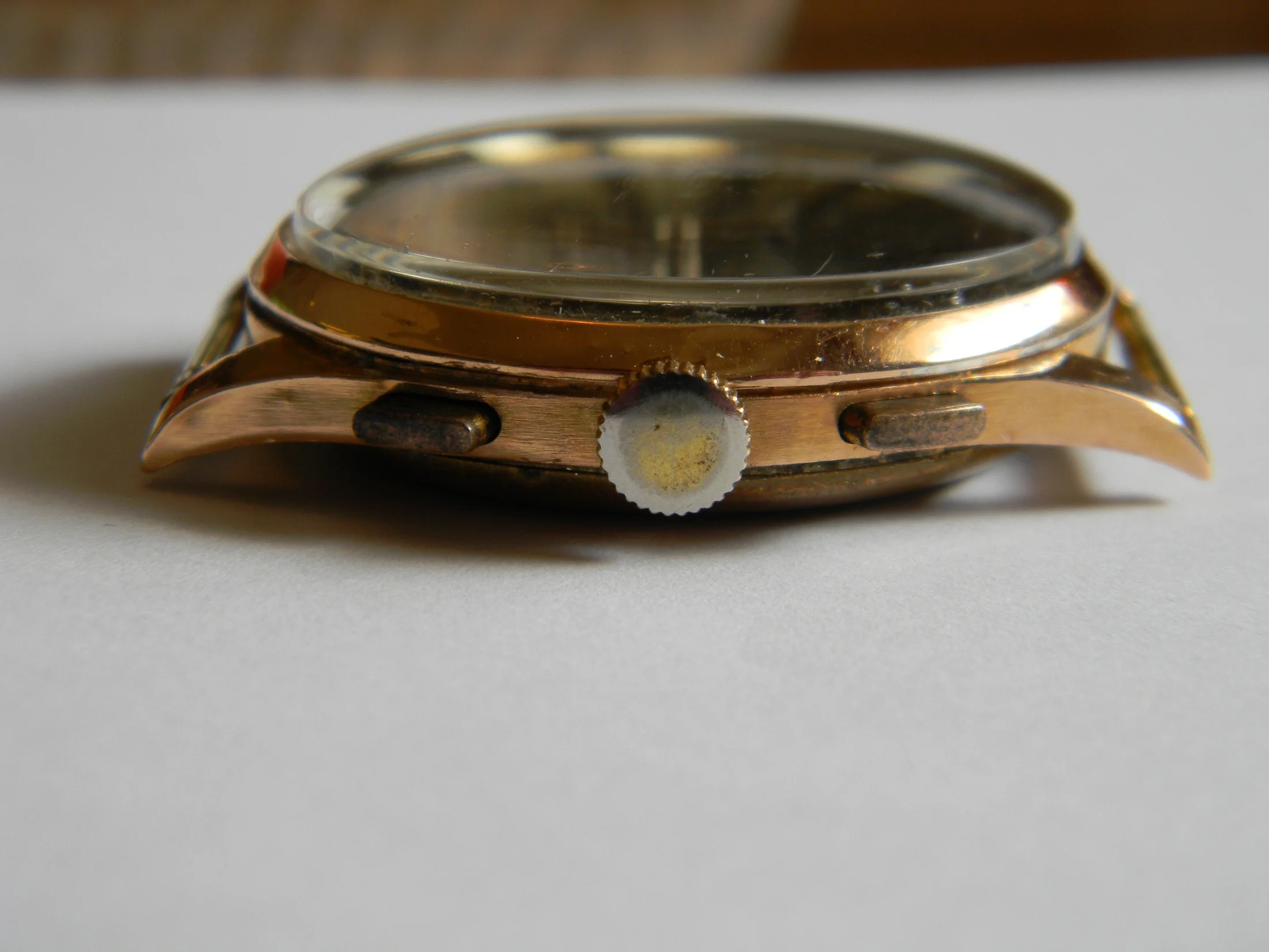 The Venus caliber 170 comes in one of those notorious 18k thin gold cases. I bought this with the intention of finding a better case for the movement and dial, but never bothered. The bezel and gold case back are both loose and won't stay on the case.