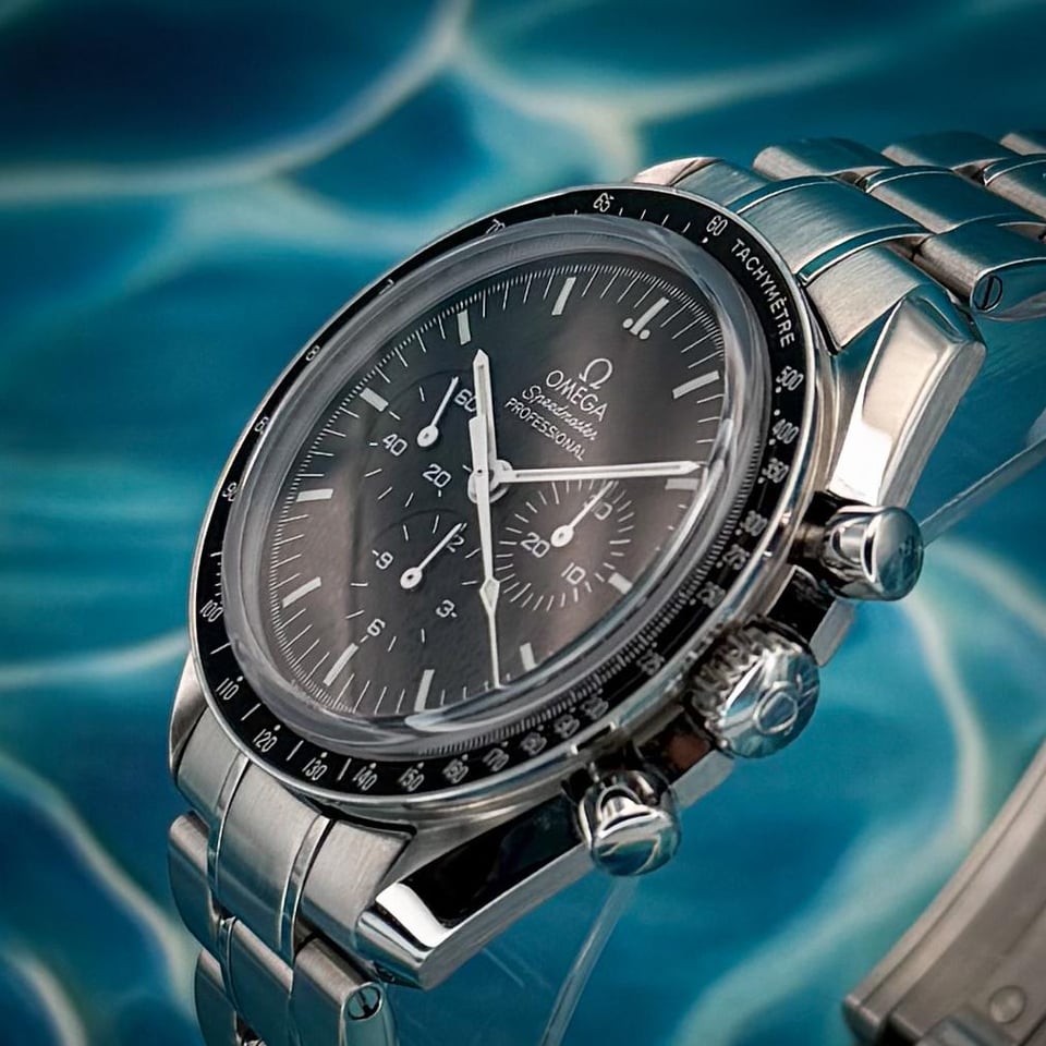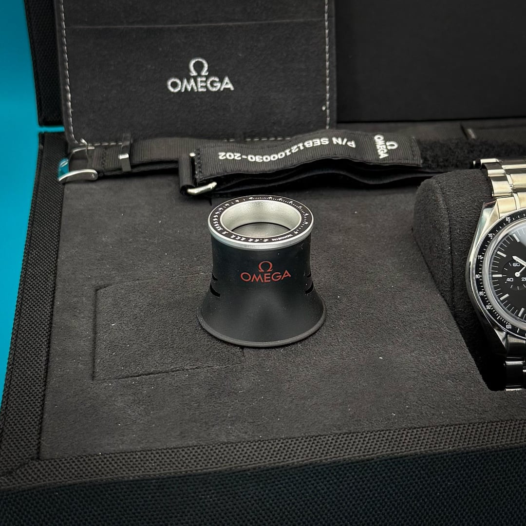 Up for sale is this Omega Speedmaster Professional Moonwatch. If you geek out on presentation as much as I do, then this one should make you drool. As a homage to the first watch ever worn for the moon landing, this manual winding watch was just what they needed in zero G where gyroscopic automatic winding watches were useless. The watch comes as a complete set with Triple box, two extra straps, inspection magnifying glass, and Omega Emblem. CONDITION: Watch is in very good condition with light signs of wear on the case, bezel, bracelet and clasp. There are some more visible signs of wear on the bracelet and clasp. Please refer to photos for a good representation of wear. **PRICE: $5,198** \+ label SHIPPING: We ship fully insured Priority overnight. PAYMENT: We accept Zelle, PP F&F or bank wire as payment. I'm happy to provide plenty of strong references as well as to hop on a video chat to introduce myself, my company, the watch, and make sure that this timepiece is the right one for you. COMES WITH: \- Watch \- Inner box \- Outer bi-fold box \- Outer cardboard cover box \- Omega card holder \- Omega Instruction Manual \- Omega eye glass magnifier \- Metal Omega Emblem \- Omega hang tag Timepieces are an incredible accoutrement to our lifestyles, so I strive to accurately display all of my watches' exact condition in my photos/videos and pride myself in being very customer service oriented. My goal is to have 100% positive and smooth transactions, so please feel free to reach out if you have any questions, and thanks so much for checking out my listing!
