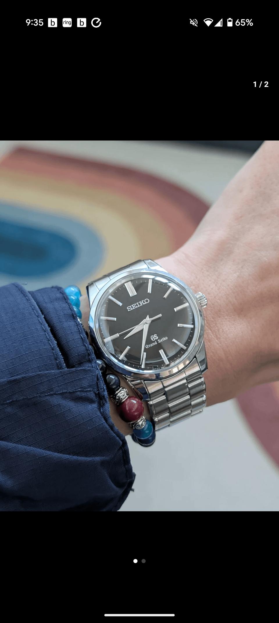 Hi watch fam, up for sale/trade is my beloved daily Grand Seiko JDM SBGX121. I haven't seen another one other than mine out in the wild, there is one or maybe two other examples of this watch out for sale from Japan. So this is the only example on the web in the states. Asking for $1900 shipped, watch was serviced by Grand Seiko service studio in Jersey in late Dec 2024. Comes with GS studio service receipt, stock OEM bracelet that can fits up to 8" wrist, currently sized snuggly for my 6.25", inner and outter box , instruction manual and two extra aftermarket Uncle Seiko bracelets that fit with the OEM endlinks perfectly for summer time if you need the extra flexibility of clasp micro adjustment. Only really interested in time only 32-34mm watches, like the sbgx349, nomos club sport 34mm, feel free to reach out for a possible trade deal. Backstory of the 121: Someone once asked why the sbgx121 is special? Well, who doesn't love the older dual-logo Grand Seikos—it feels a bit empty above the 6 o’clock marker without it. It’s also important to note that the SBGX119 and 121, along with the 115 and 117, were the last four 9F61 watches released in 2015 with dual old logo. In 2017, Seiko relaunched and moved upmarket with the single GS logo. There were no new releases in 2016. That makes the SBGX121 one of the last "youngest" 9F61 watches with the classic dual-logo design. Seiko re-released the SBGX119 and 121 as the SBGX319 and 321 in 2017. However, there were no design changes—just the transition to the new single-logo branding. Speaking of dimensions, it has a 37mm case like my SBGX261, but with a more compact 42.9mm lug-to-lug. The lugs are 18mm, not 19mm, and it wears smaller than the 26X series. The domed crystal gives off a strong '60s Madison Avenue vibe, and since it’s all dial with no bezel, legibility is excellent. So here we are—a modern, durable 9F61 watch. Unlike the older SBGX009 (which I love!), I don’t have to worry about water resistance. I sent the 121 in to the Grand Seiko Service Studio for a full inspection and overhaul. They replaced the gasket, stem, and crown—and even sent back the old parts for safekeeping. Passed the official rating of 10 bars WR with flying colors! This is a low-key GADA with class and accuracy—something that will last for decades. The ruggedness of the 9F61 movement, along with Seiko’s promise of 30 years of guaranteed parts availability after the movement’s end of life, the 9f61 still is the only time-only quartz movement , so I can see it will be in production for the near future for at least minimum of 5-10 years,which means this watch could outlast anyone of us with proper care. So why am I thinking to sell? Well, for years I thought 36mm-38mm was the obsolete sweet spot for my pencil wrist, but having owning the nomos 35mm to the nomos 33 and having the recently acquired sbgx347 that is 34mm. Turned out I really like the proportion of 34mm watches! ( Also just put in the kurono 34mm project watch). So I'm leaning toward that range of watches .