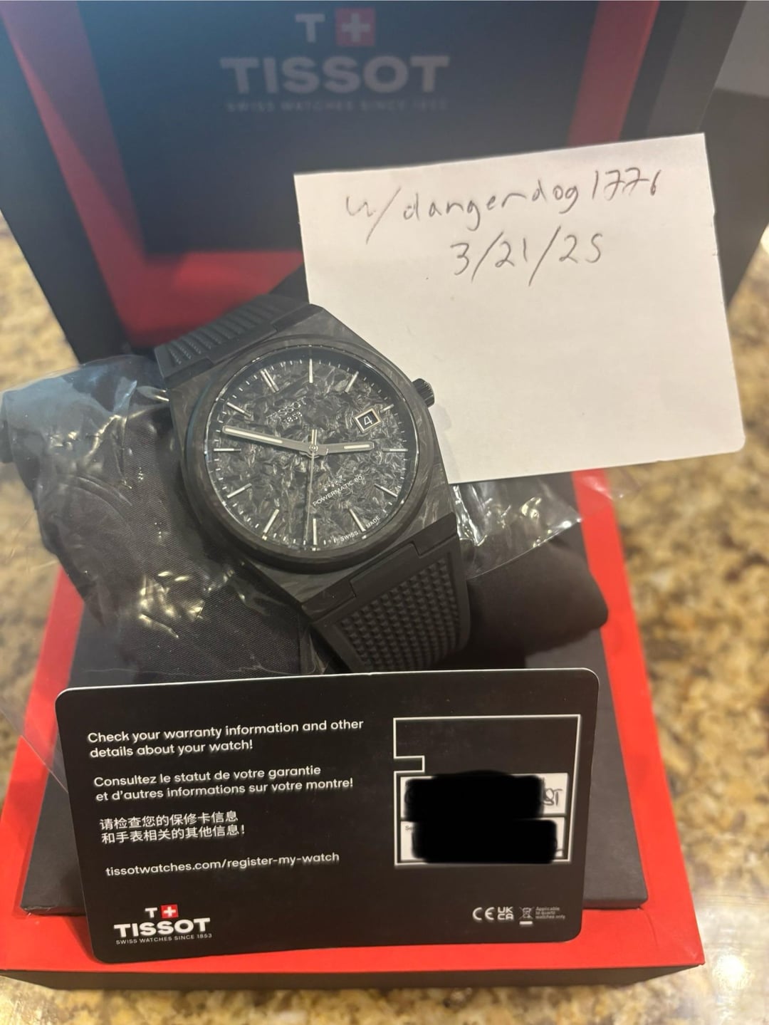 Up for sale is a Tissot PRX Powermatic Carbon with full kit and all stickers and tags. Warranty is dated January 2025. This is a super lighter watch perfect for spring and summer! Asking $935 CONUS shipping only!