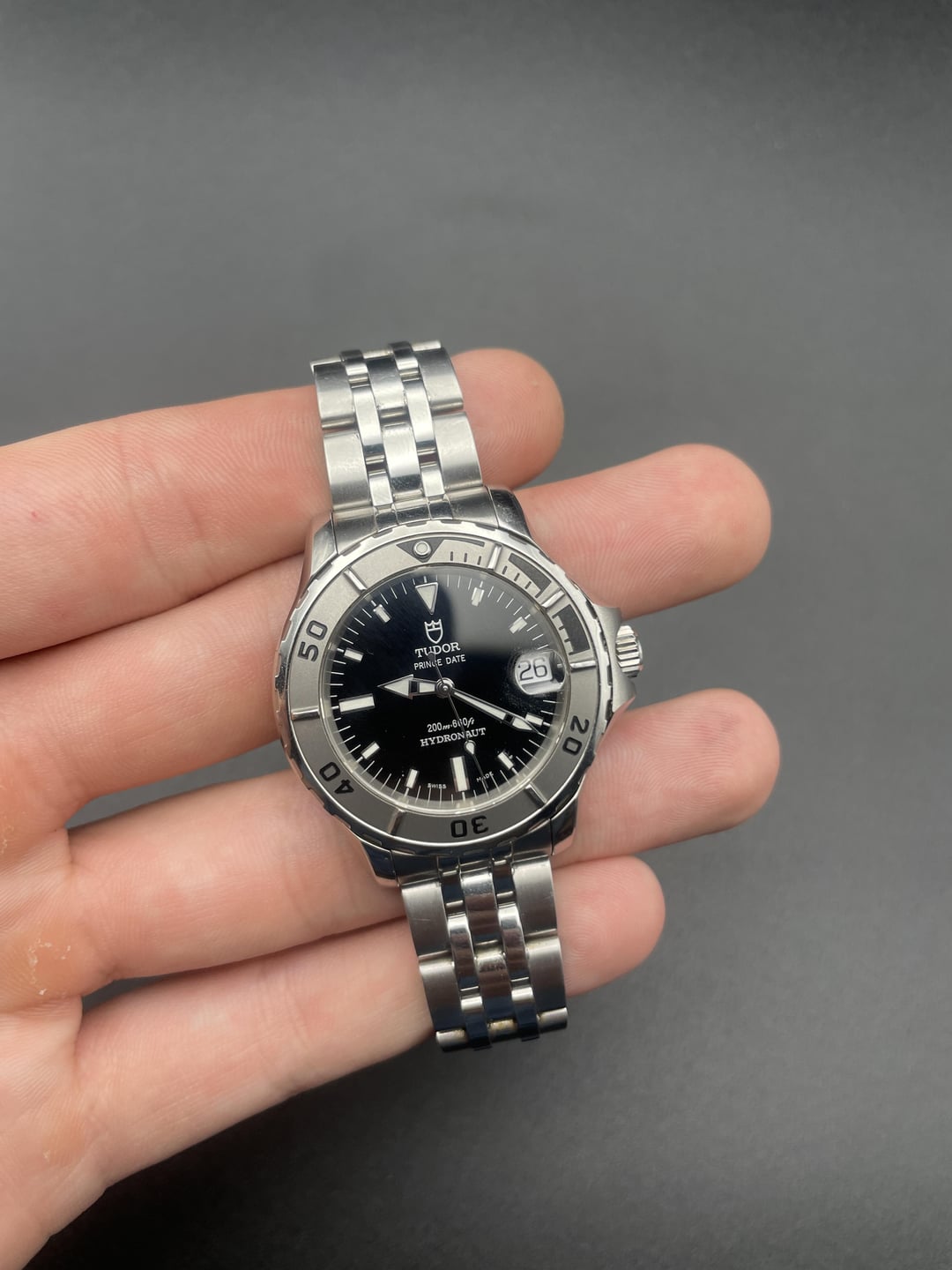 Prince Date Hydronaut for grabs today! In nearly perfect shape this bird is ready to be worn! Zero to no sag in the bracelet, fits mid-7' wrist. The watch is running strong. It comes with original punched papers and serialized hang tag. Ref: **85190** Price: **$1,999** Dimensions: **36mm** Serial: 770k Shipping: CONUS only, unless label is provided. Location: US, Iowa Please inspect the photos in their entirety, as they show the accurate and true condition of the piece. Purchase with confidence registered business with the state of IA. Plenty of references locally and from most watch groups happy to run a reference check anywhere! **Find us on I-G: QCTIMEPIECES** TS: [https://imgur.com/a/xmac609](https://imgur.com/a/xmac609)