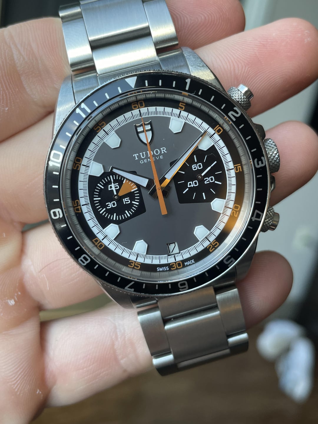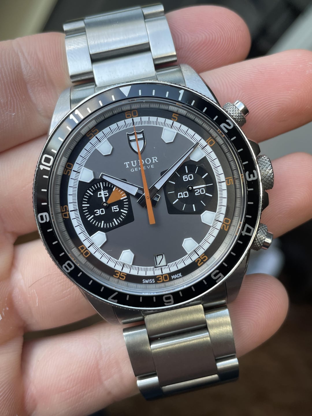 Tudor Heritage 70330N Grey Dial Chronograph Condition: Overall very good condition. Crystal clean. Bezel clean. Case sides and bracelet have faint hairlines. Please refer to all photos for accurate condition. This is a beautiful piece that would look amazing in someone’s collection. Set comes double boxed, warranty card, red hangtag, and additional links. $2599 Shipped CONUS OBO (NO TRADES) Payments accepted - Paypal F&f or wire!