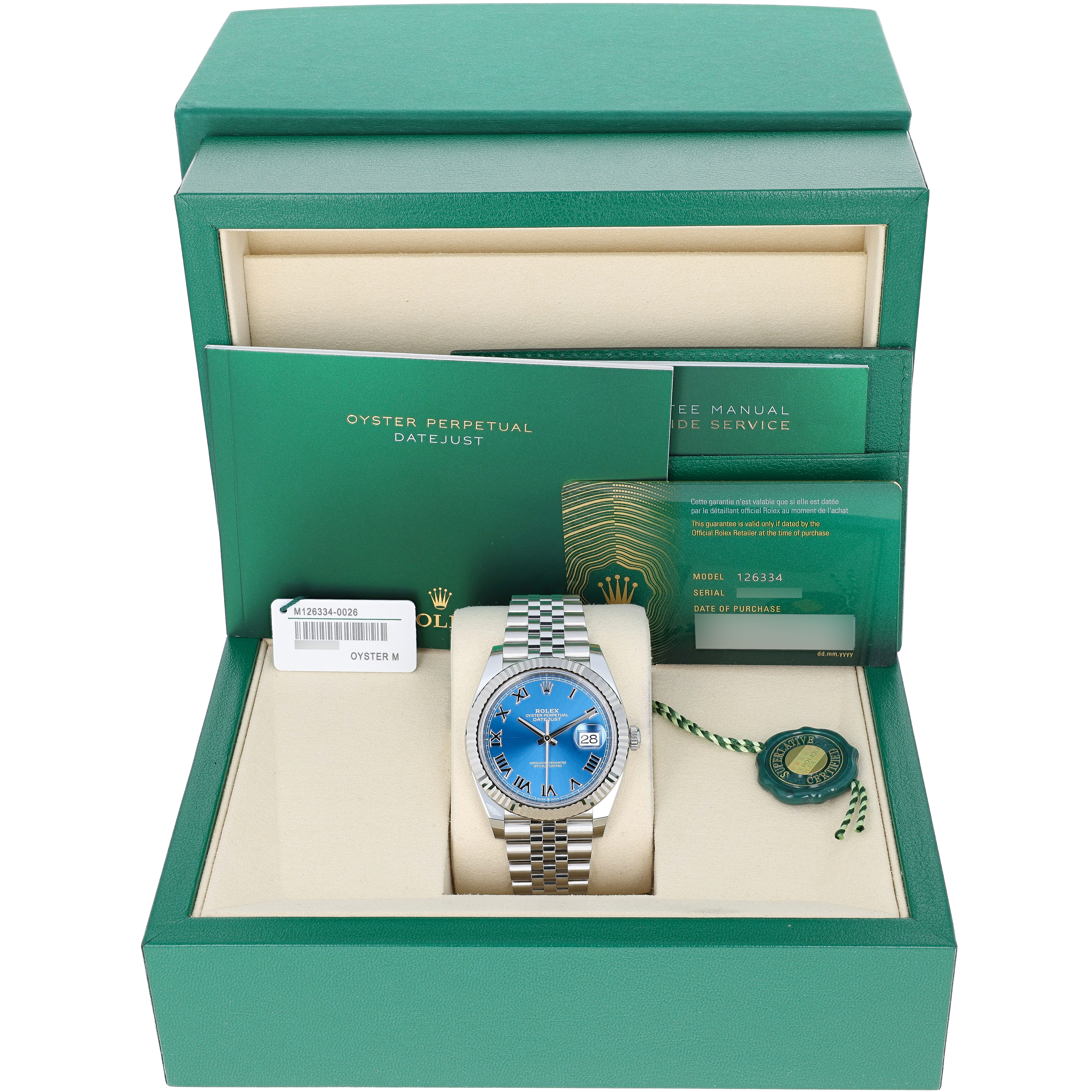 Rolex Datejust 41 Azzurro Blue Roman Dial | Ref. 126334 | 18k White Gold Bezel
