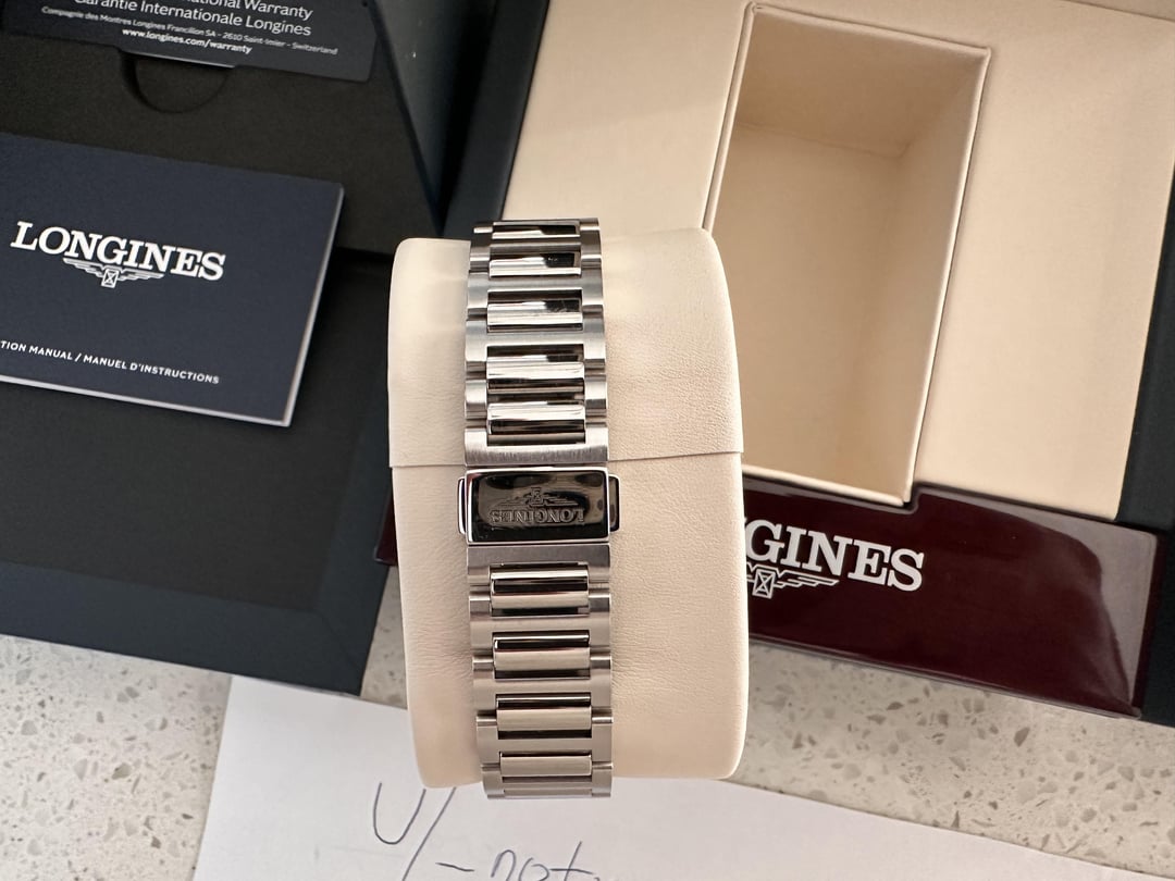 Up for sale is my Longines Conquest 38mm L37204926. Timestamp: https://imgur.com/a/2aKzfBN Case: Perfect Condition 10/10, not a scratch or swirl Bracelet: Great Condition 9.5/10, a few micro scratches on the underside due to desk-diving but overall looks brand new. Specs: Diameter- 38mm, LTL-46.80mm, Lug Width- 19mm, Power Reserve 72 hours Originally purchased from Macy’s and it is still under the Factory Warranty. Will come with Box, papers, and extra links. Selling to help fund bigger purchase. Price is $1550 and I will cover shipping to CONUS only. Will accept Paypal G&S only or f2f in Orlando, FL. Thank you!