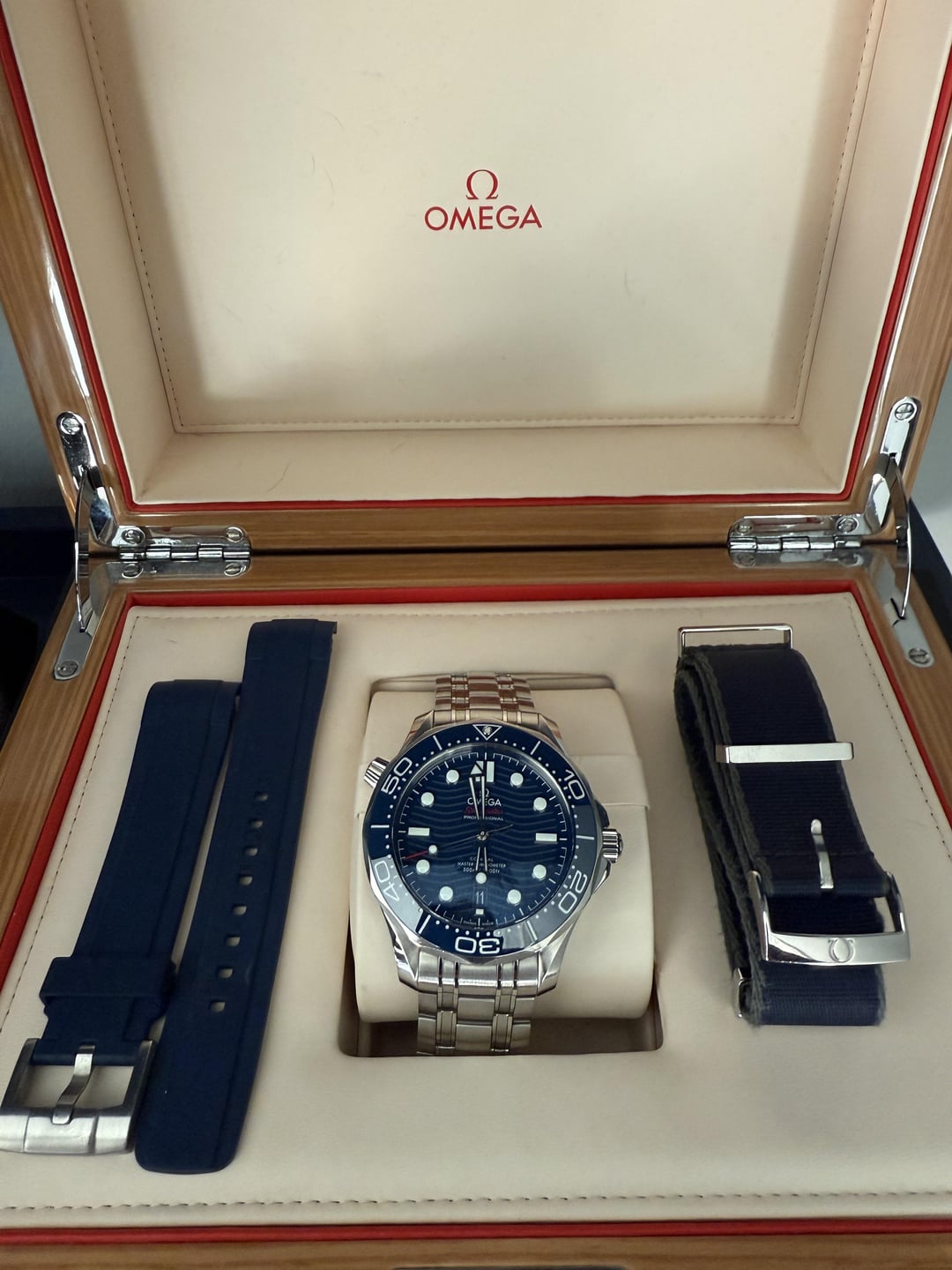 I’m offering this incredible watch with two additional straps from Omega and Zealande along with the full kit and extra links for the bracelet. I’m looking to move this quickly which is why it is listed this low. There are some typical scuffs on the clasp but could easily be polished to like new. Preferably in the US, priced at $3,750+ shipping for the watch, straps, and full kit. Cards are dated 2019 and I will include them. Reference number 210.30.42.20.03.001
