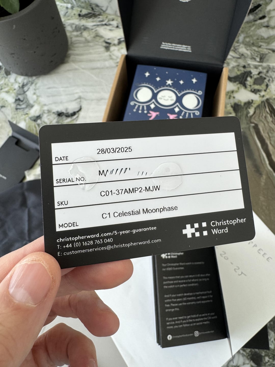 Like-new, sold out Limited Edition C1 Celestial Moonphase, with almost the entire 5 years remaining on the warranty up to March 2030. Hand-drawn (and painted) artistry meets masterful craftsmanship in the C1 Celestial Moonphase – a magical collaboration between Christopher Ward and Mr Jones Watches, celebrating time, the night sky and the irresistible allure of the moon. Limited to just 300 pieces. Lightly worn, and strap unworn. It’s a little too small for my tastes at 37mm. Full set. Shipping fully insured.