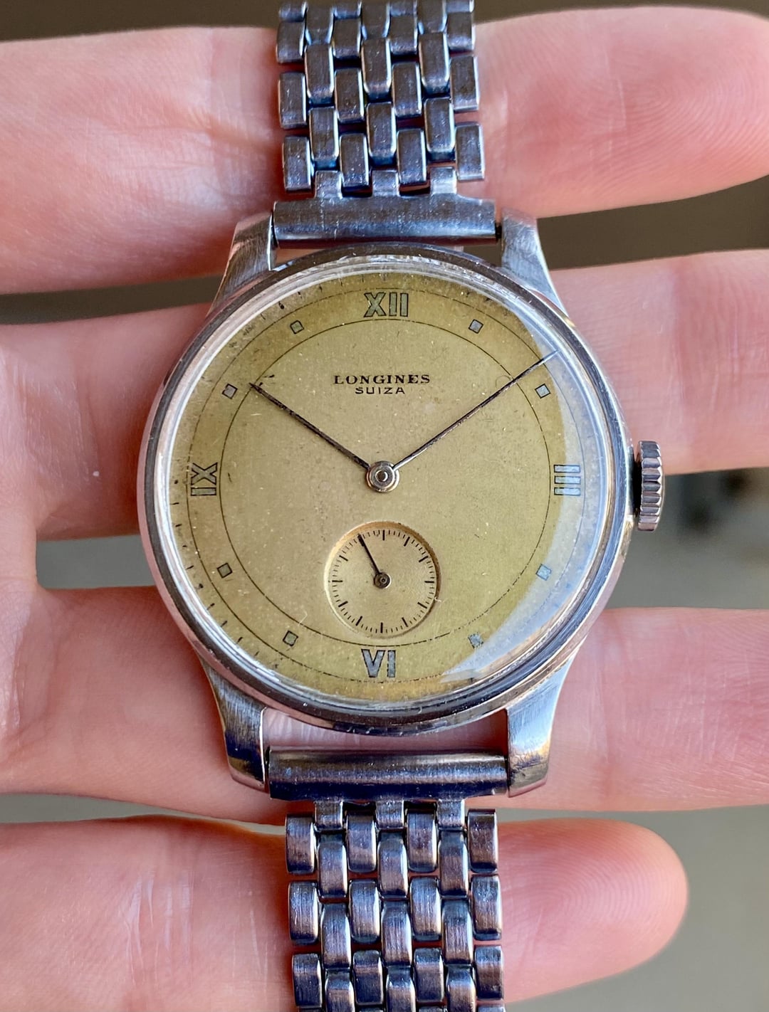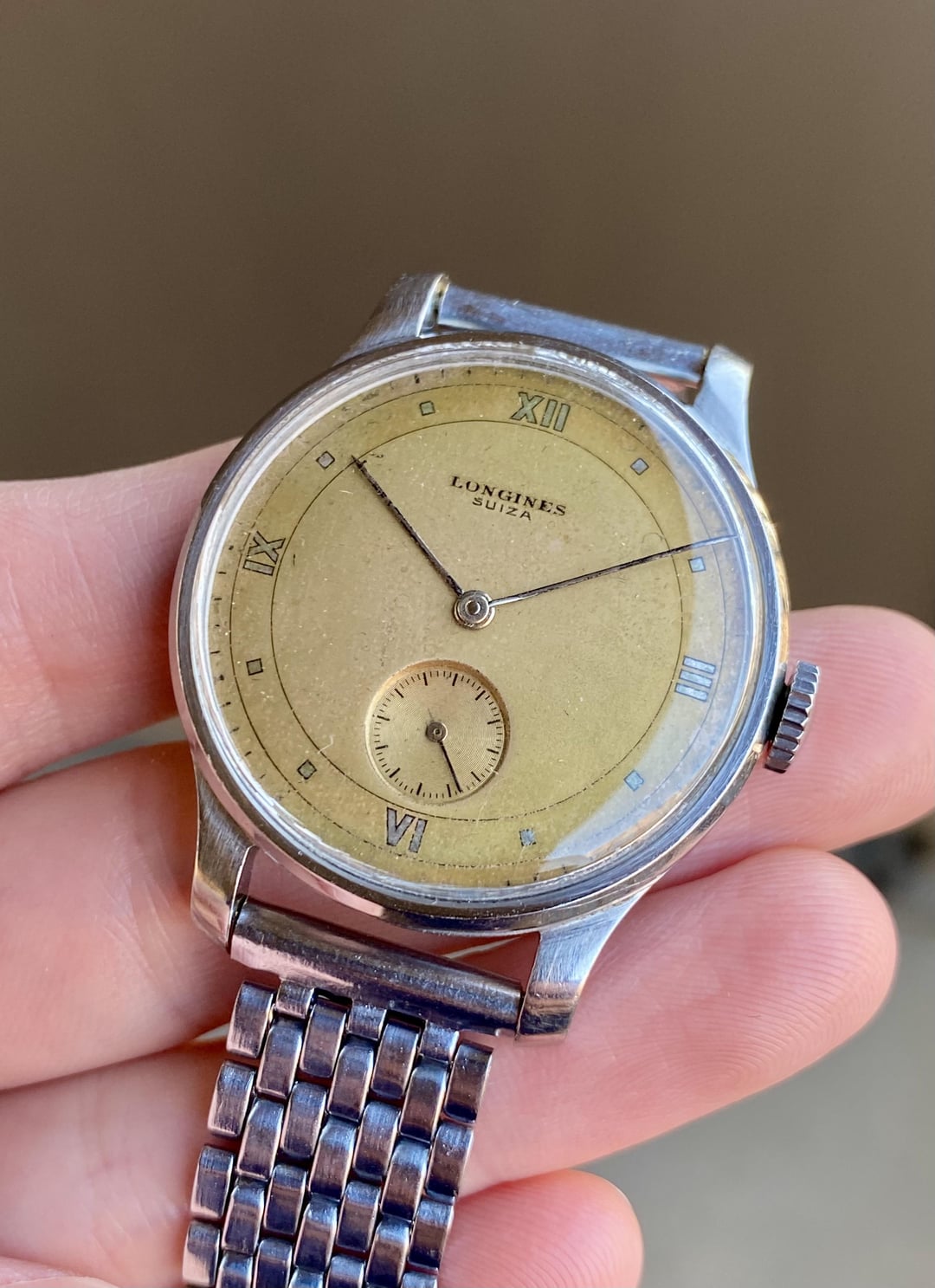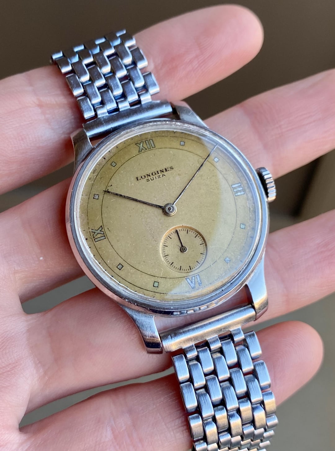 [WTS] 1945 Longines w/ 35mm Steel Case, Suiza-Signed Copper Dial, 12.68z Movement, BOR Bracelet