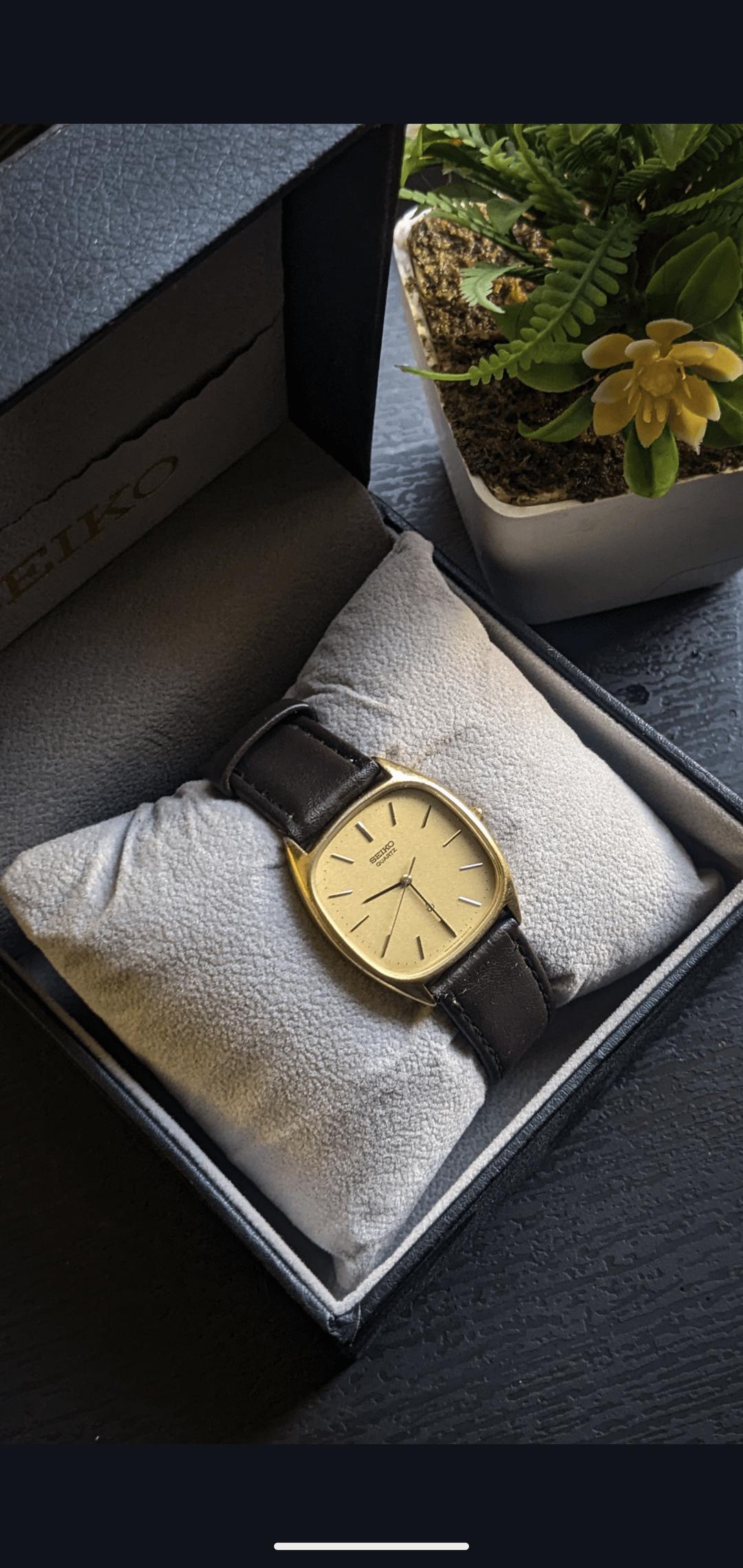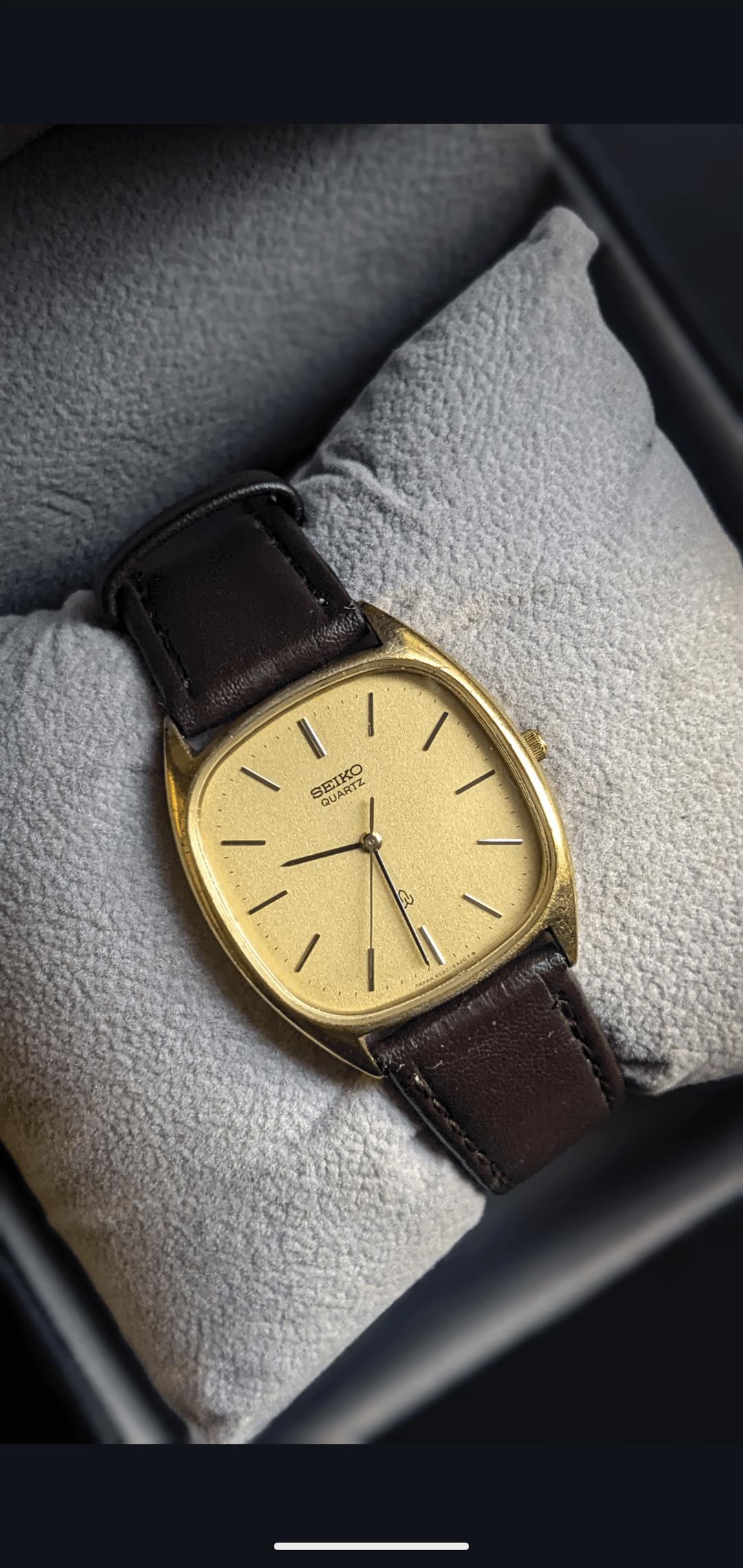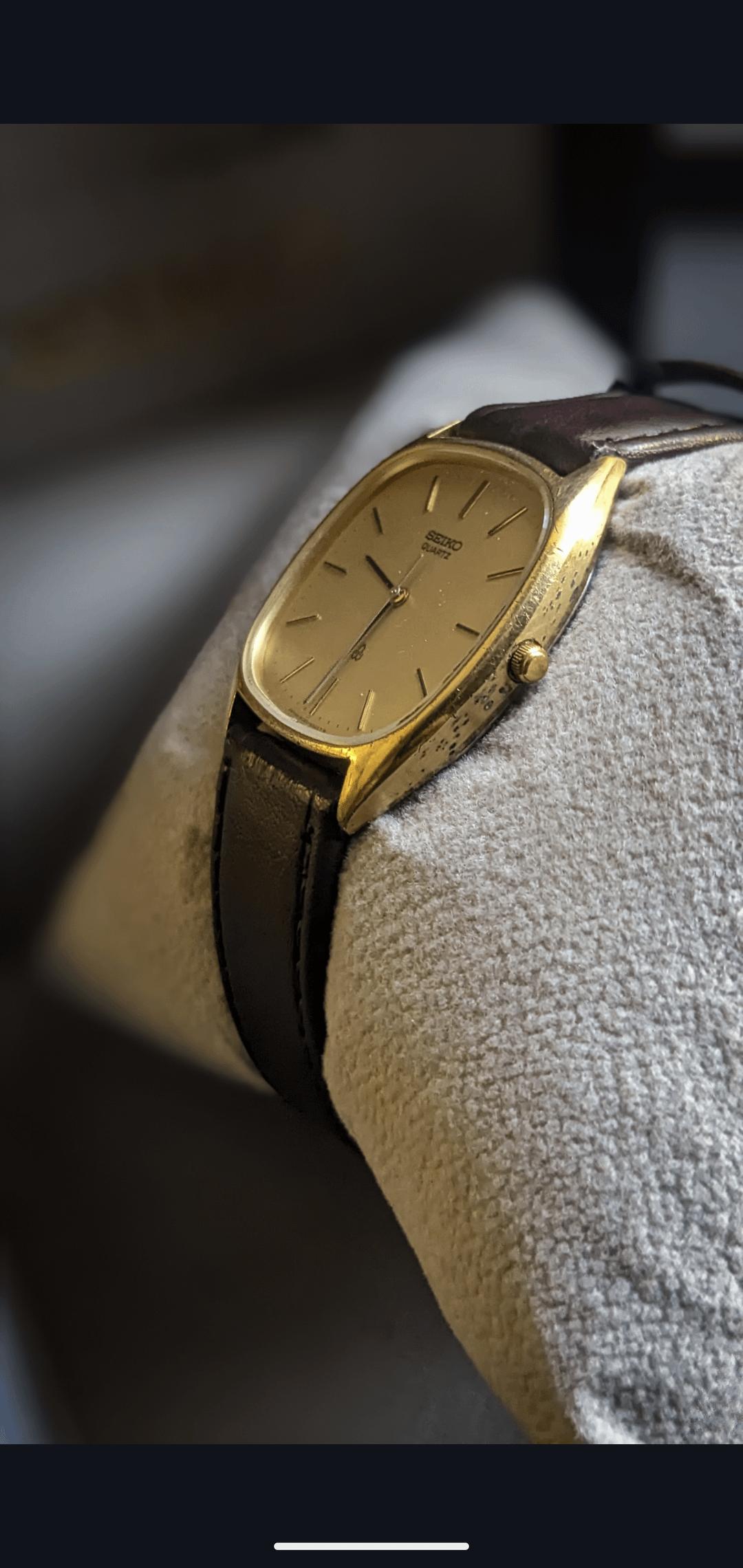 Hello WatchFam, Selling my Vintage japanese Dress watch so called Seiko which was manufactured between 1980-1990's. The watch contains aftermarket strap because Original strap was used already. Watch have antique 6030 quartz movement working fine. new battery installed. watch features oval shape case with Textured dial It's a unisex watch with dial size 32mm approx. timestamp: https://imgur.com/a/AGJPWwr price : 99$ Shipped worldwide ✅Comment before sending dm . ✅payment method PayPal ✅delivery through ups