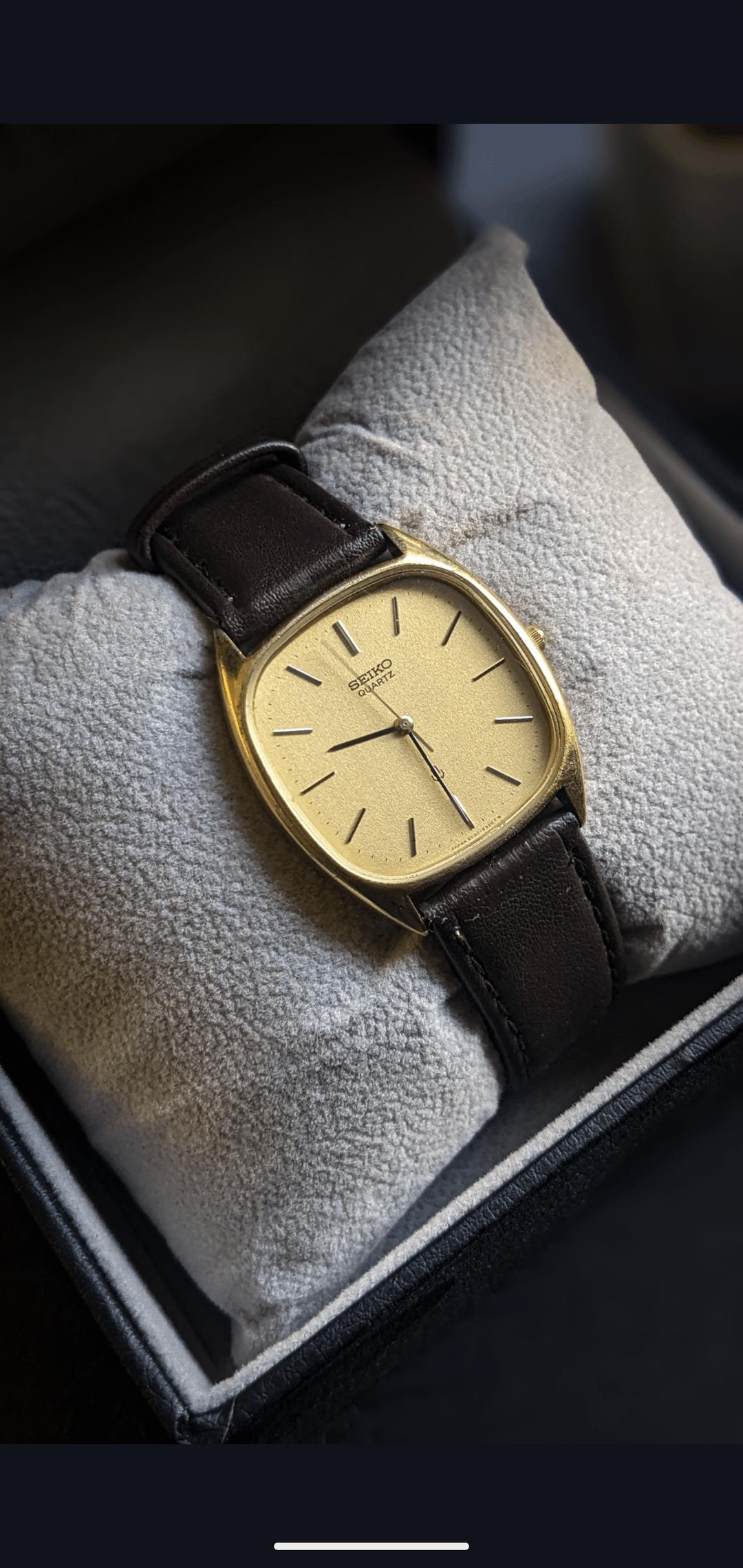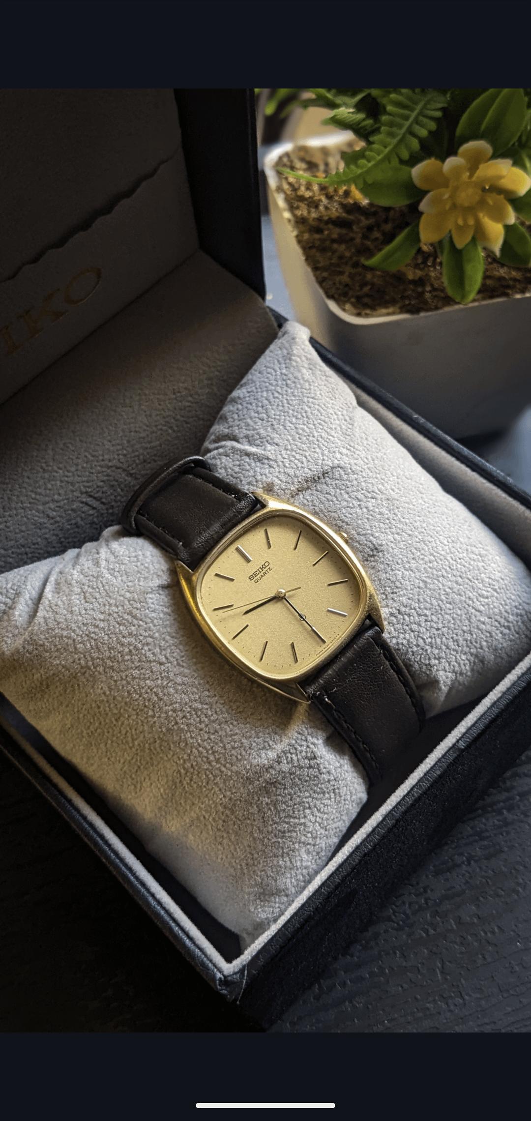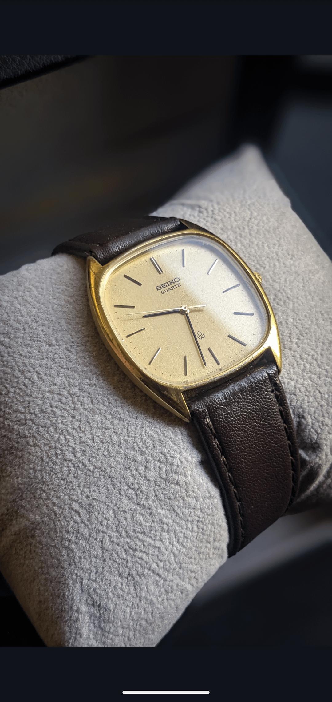 Hello WatchFam, Selling my Vintage japanese Dress watch so called Seiko which was manufactured between 1980-1990's. The watch contains aftermarket strap because Original strap was used already. Watch have antique 6030 quartz movement working fine. new battery installed. watch features oval shape case with Textured dial It's a unisex watch with dial size 32mm approx. timestamp: https://imgur.com/a/AGJPWwr price : 99$ Shipped worldwide ✅Comment before sending dm . ✅payment method PayPal ✅delivery through ups