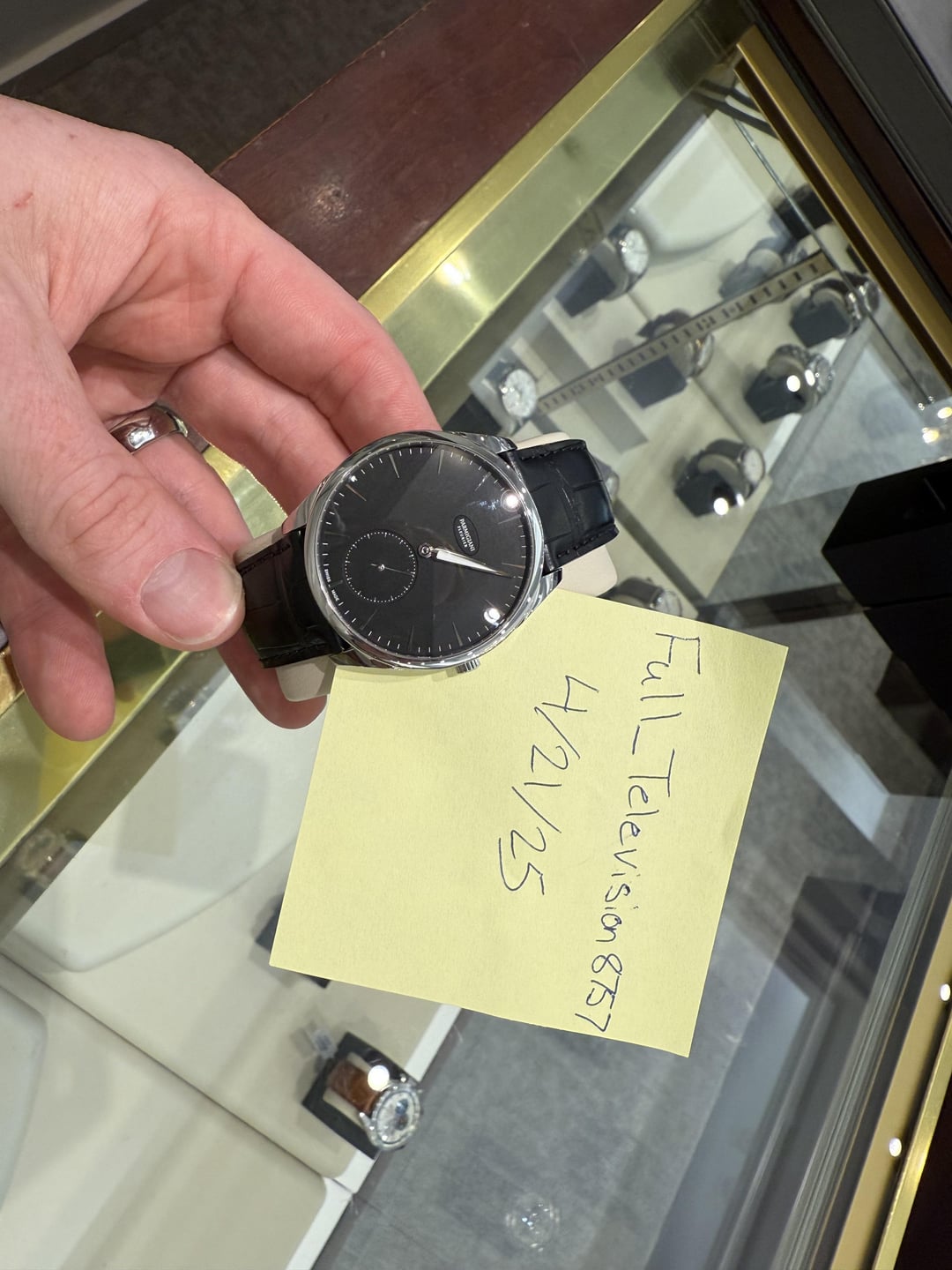 Just look at that micro rotor movement! You don’t see a lot of watchmaking like this at the price point. This is a very underrated brand that is finally starting to get some of the hype it deserves. Especially after some of their great releases at watches and wonders this year. Model: Tonda 1950 Ref# PRC288-0001400 Case Material: Stainless Steel Case Dimensions: 40mm Bezel: Stainless Steel Dial: Black Dial with Small Seconds Band Material: OEM Black Leather Strap with Deployant Max Wrist Size: 8 in. Movement: Automatic, Mechanical (Micro rotor) Accessories: Has Box only (No papers) Condition: Has some light scratches on case MSRP: $14,100 Price: $5,100 shipped! Bank wire price. Can take credit cards for an added cost Washington state residence, subject to sales tax. Email: [email protected]