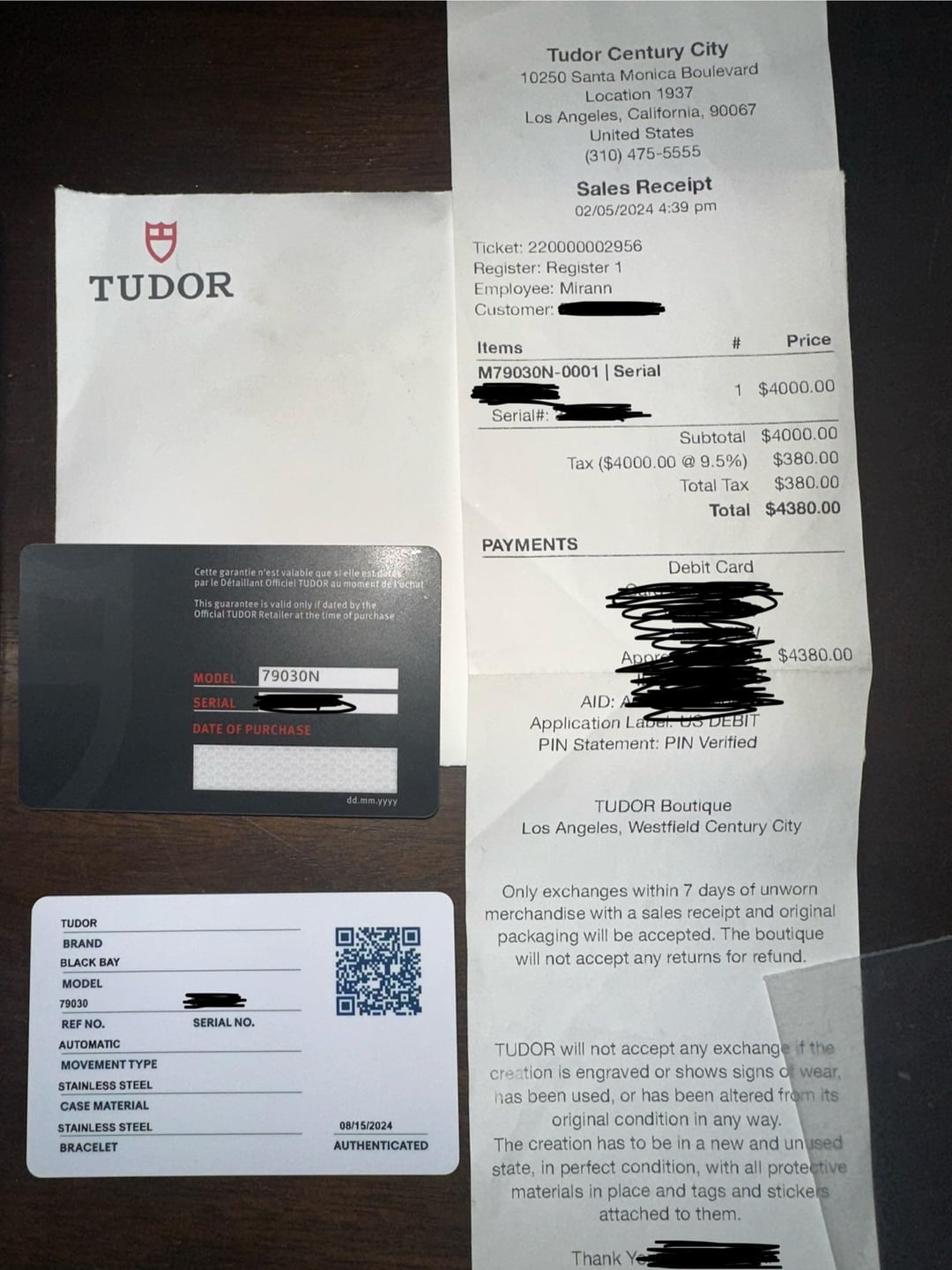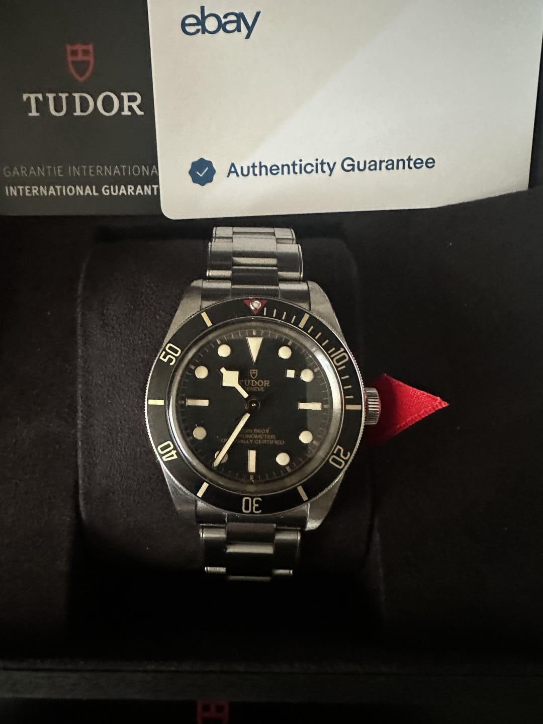 Hey guys! This is my first listing on the forum, so I completely understand any hesitations. To ensure full peace of mind for all current and future buyers, my approach is buying my first 10 or so watches exclusively through eBay with the Authenticity Guarantee program. This way, every piece I sell comes verified and authentic and gives some reassurance to you guys. Item: • 2024 Tudor Black Bay 58 • Full Set (Box, Papers, Hang Tag, Envelope from Tudor, Original Receipt) • OEM Bracelet with Full Links (Bracelet has been professionally polished; head of the watch remains unpolished) • 4 years of active Tudor Warranty remaining • Comes with eBay Authenticity Guarantee Card (watch was originally purchased at Tudor Boutique in LA & then sold via eBay) Condition: • Light polish only on the bracelet • Watch head remains untouched • Excellent overall condition Location: • Based in Central Florida • Local meet-ups welcome for verified buyers Payment & Shipping: • I will accept PayPal (Goods & Services — buyer covers fees if applicable) • Shipping is included at my current listed price ($2,700 shipped). • If a negotiated offer is made, shipping costs can be discussed. Price: • $2,700 (Shipping included at listed price) Notes: • Feel free to reach out with any questions! • Happy to provide additional pictures, timestamps, or video upon request. • Buy with confidence — I’m committed to full transparency and smooth transactions. Thank you for your time and interest!