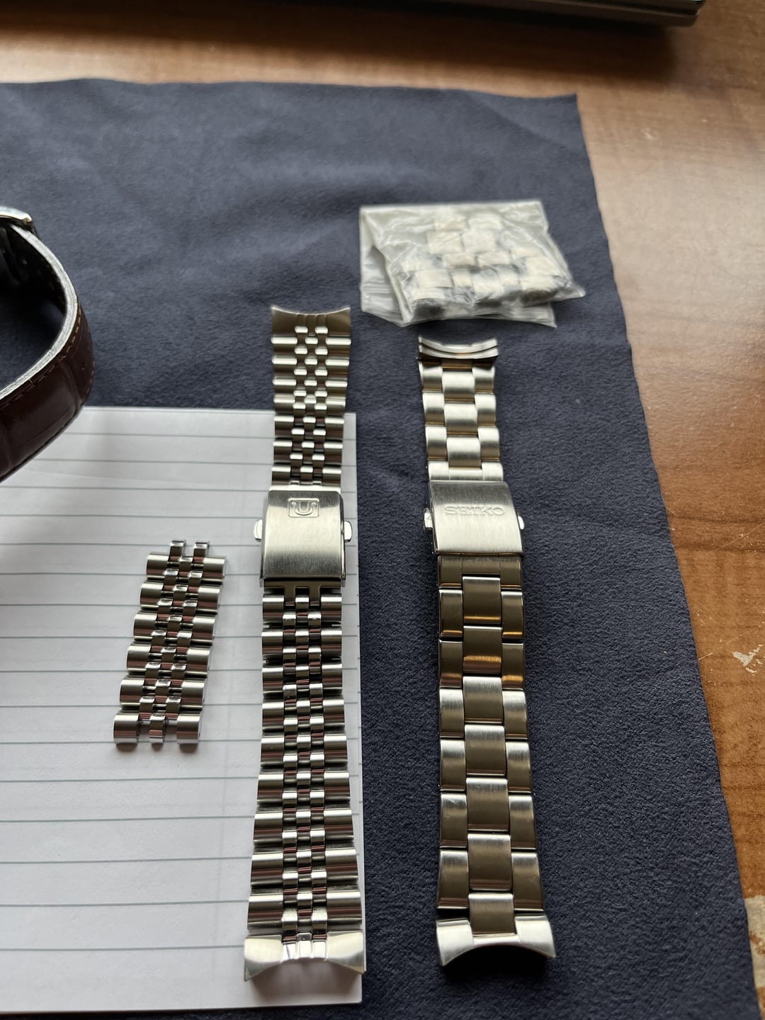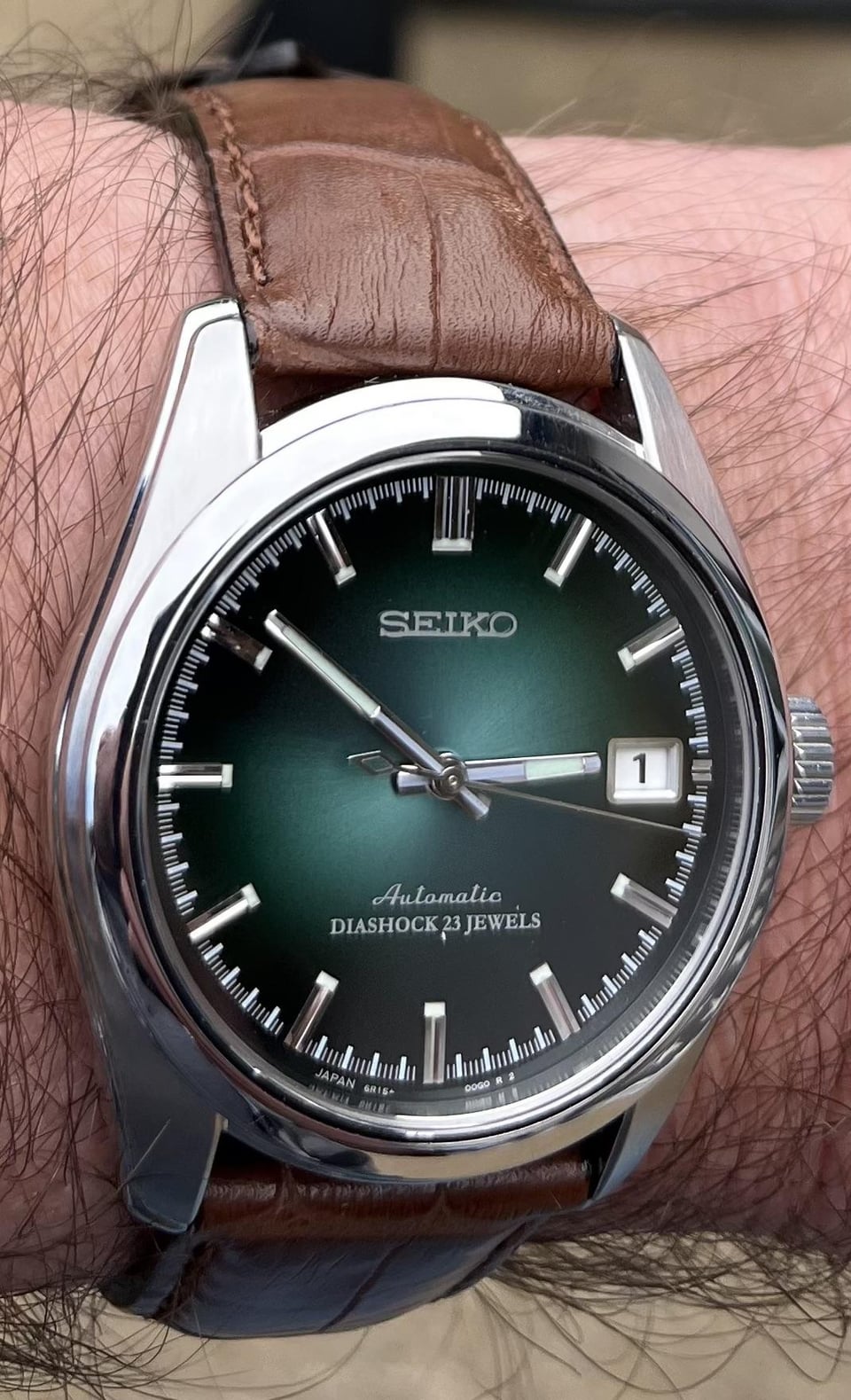 SARB007 Viridian Green Fume dial in excellent condition. Picked this up on the sub a few months ago and love this watch, but my interests have changed a bit so moving it along. Case is in excellent condition with very minimal wear and sapphire crystal is in perfect condition. Comes with Seiko deployant watch strap, original Seiko bracelet and Uncle Seiko Jubilee bracelet with extra links as shown in pics. I do not know the maximum wrist size of the bracelets because I’ve only used the strap since purchase. Watch has been professionally serviced within the last year (with receipt) and is running great and well within specs. No box or docs. Comes in Seiko watch roll. Please let me know if you have any questions or would like additional pics or video. Specs: * Case width: 38mm (w/o crown) * Lug to lug length: 46mm * Lug spacing: 20mm * Thickness: 11.2mm * Crystal: Sapphire * Movement: Seiko 6R15 automatic * WR rating: 100 meters Asking $575 shipped CONUS Payment by Zelle preferred or PPFF if necessary. For Sale only / No Trades at this time. Thank you!