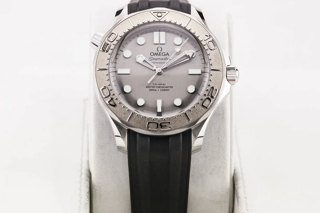 Up for sale is a brand new Omega Seamaster 300M 42mm Grey Dial / Titanium Bezel on Rubber Strap, reference # 210.32.42.20.06.002. It comes complete with all boxes, papers, booklets, hang tag and Omega Warranty Card dated May 2025.