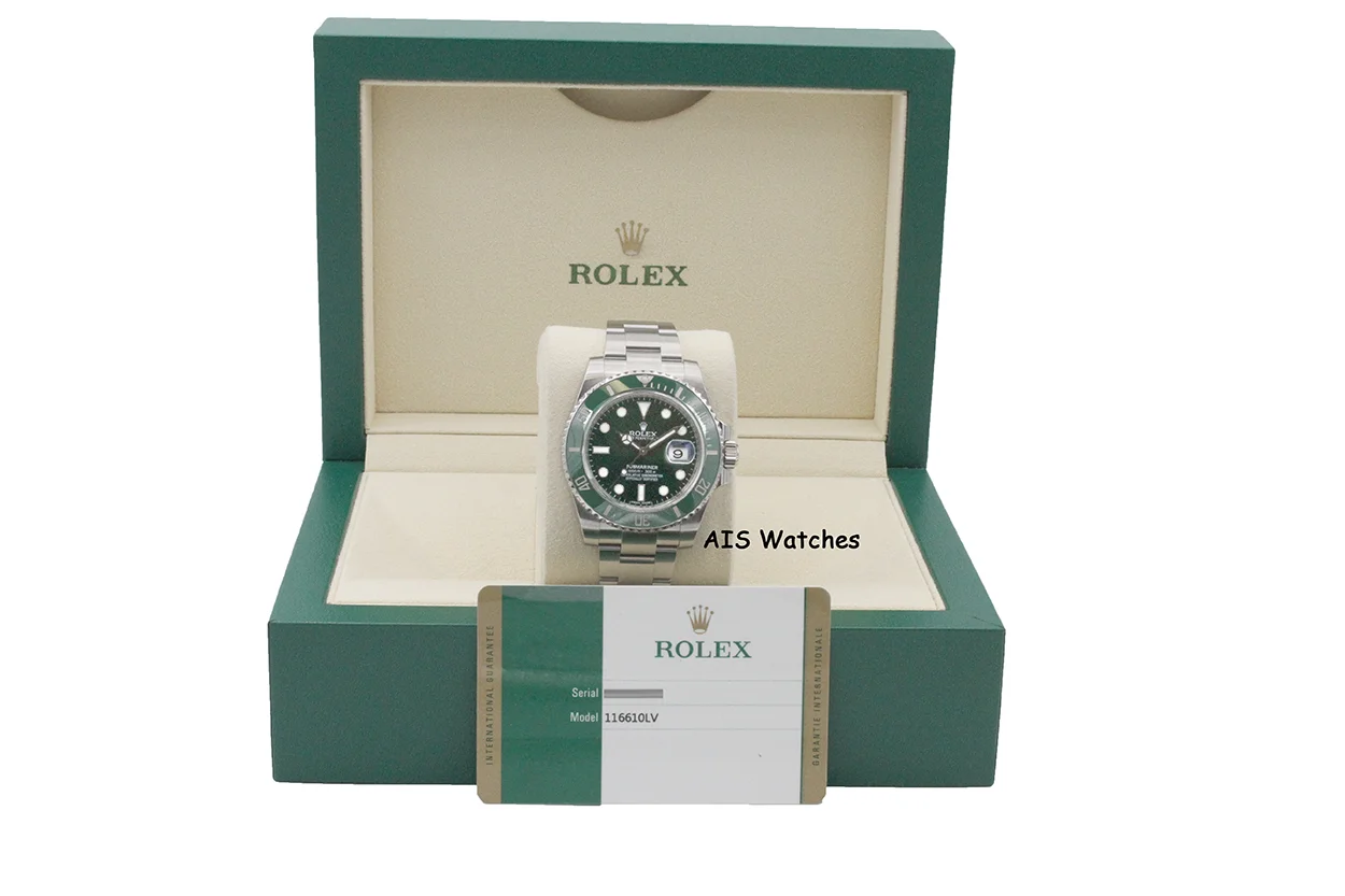 | PAPERS Rolex Submariner HULK Ceramic Stainless Green 40mm 116610 LV Watch BOX collectorswatches (8913) |