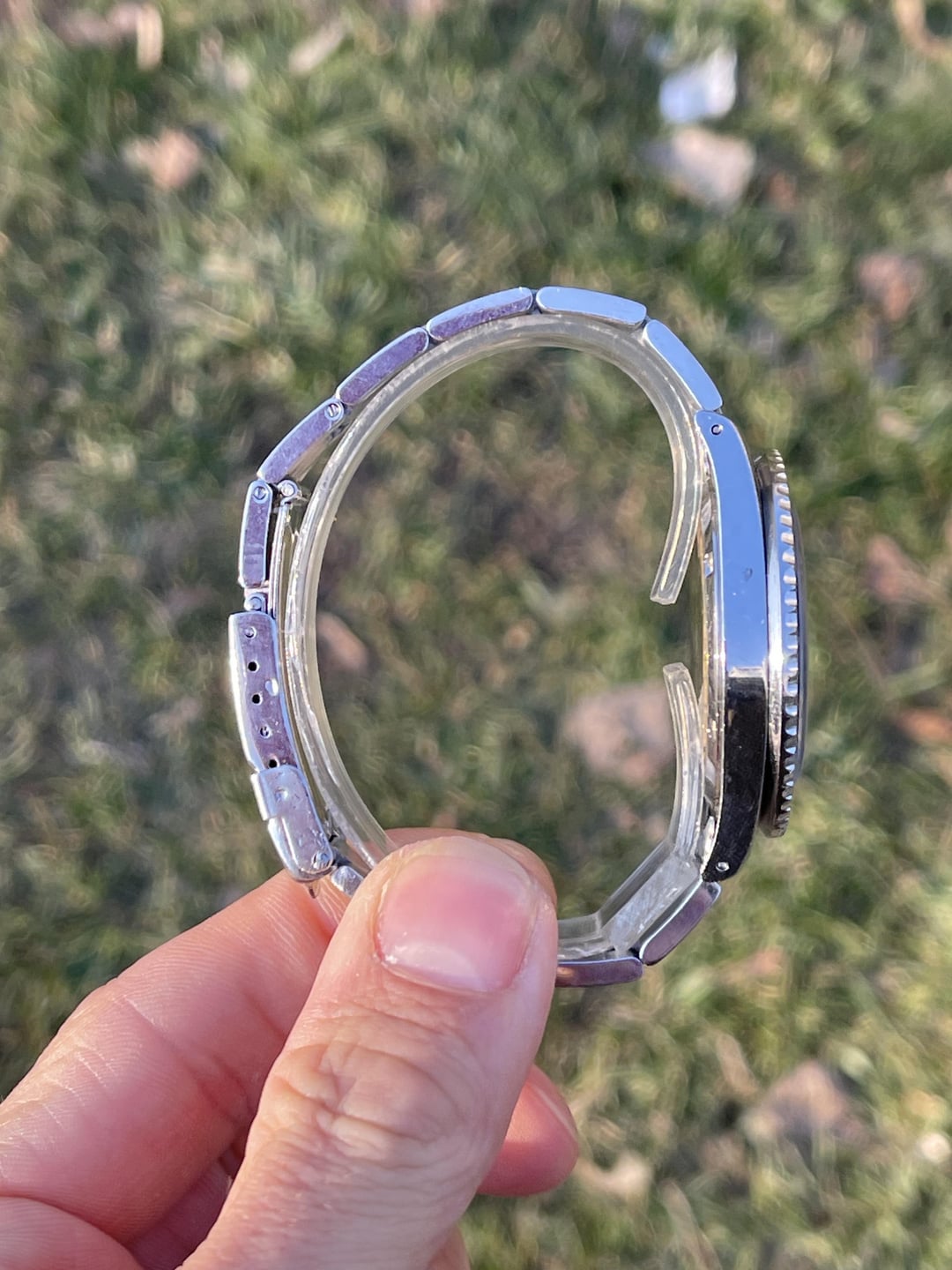 Hey all! Here is for sale a nice vintage diver Lorenz Sub Professionale 12286. Watch is in good condition. For sale is the watch, box, paper wallet with instructions and guarantee booklet. Case measures 40mm without the crown and 44mm with crown. Case is in good condition, it has signs of wear but no major dings or scratches. Caseback has Lorenz logo, 12286 reference number and even a factory sticker still intact. Bezel is aluminum black with silver arabic numerals, lume pip is missing. Crown is screw down, has Lorenz logo. Dial is matte black, it has Lorenz logo, Sub Professionelle 200m, date window at 3 o’clock and T Swiss Made T at the bottom. Lume on round hourmarkers matches the lume on hands, please check the lumeshot in Imgur gallery. Crystal is acrylic with date magnification, has no blemishes. Movement is quartz ETA caliber, fresh battery installed, you can see running hands on video in Imgur gallery. The watch will be shipped with NO battery according to new EU shipping restrictions on lithium batteries. Bracelet is in great condition, it is 20mm at the end links and has diver extension. Bracelet is tight and fully linked. Watch looks cool due to its vintage classic diver design which reminds a Rolex Submariner models and of course full set makes it even better. Album: https://imgur.com/a/Uq2cOtG Timestamp: https://i.imgur.com/kQ8mL7Z.jpeg Price is $280 through PayPal Friends and Family. Standard International shipping is included in price. I ship international. I’ve sold a couple watches here, so you can check my feedback on r/WatchExchangeFeedback I am not interested in trades.