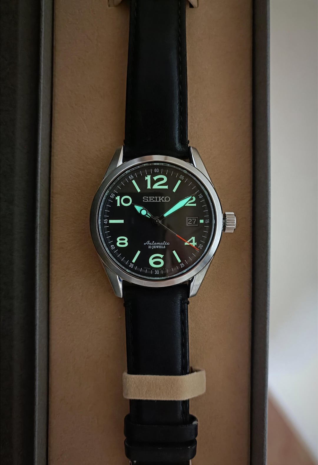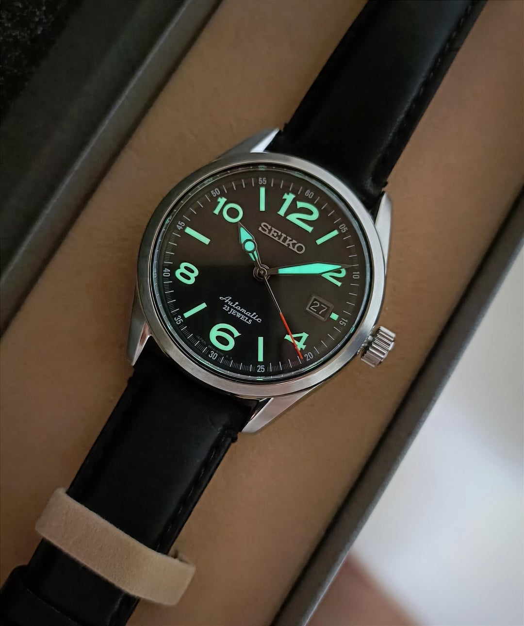 Hello r/watchexchange, I’m offering for sale the JDM Seiko Mechanical SARG011 with a red seconds hand, first released in October 2014 and now extremely rare. Condition: Pre-owned, 100% original, recently serviced. The watch remains in excellent condition with no noticeable scratches. The clasp still has the protective sticker on it. Case size: 40mm Lug width: 20mm Movement: Seiko 6R15, 21,600 vph, running smoothly with an accuracy of around +5s to +15s per day. Dial, hands, and indices: Still in outstanding condition with beautiful light reflection. This model is special because both the hands and indices have lume, making it easy to read in the dark. Crystal: Sapphire, like new with no scratches. Strap: Original Seiko leather strap with a butterfly clasp to prevent creasing. Some wrinkles are visible due to long-term storage. This is a rare timepiece that has been worn very lightly and remains in excellent condition. A great choice for collectors! Included: As shown in the pictures. Images:https://imgur.com/a/ljWikQS Timestamp:https://imgur.com/a/xnCAy1G Pricing, Payment, and Shipping: Price: $620 (shipping not included). No trades. Payment: PayPal F&F or G&S (+4.6% fee). Shipping: FedEx Express ($50–80 depending on destination, 3–4 business days). Thank you for your interest!