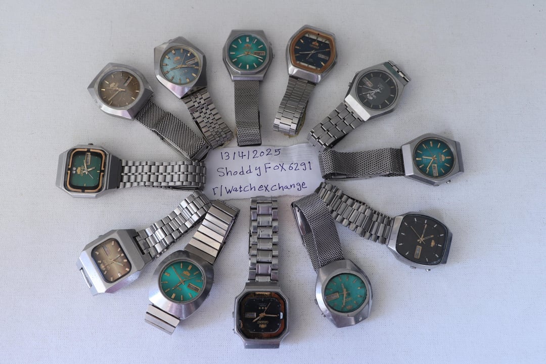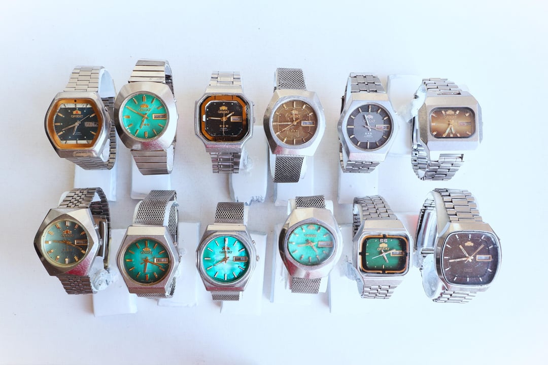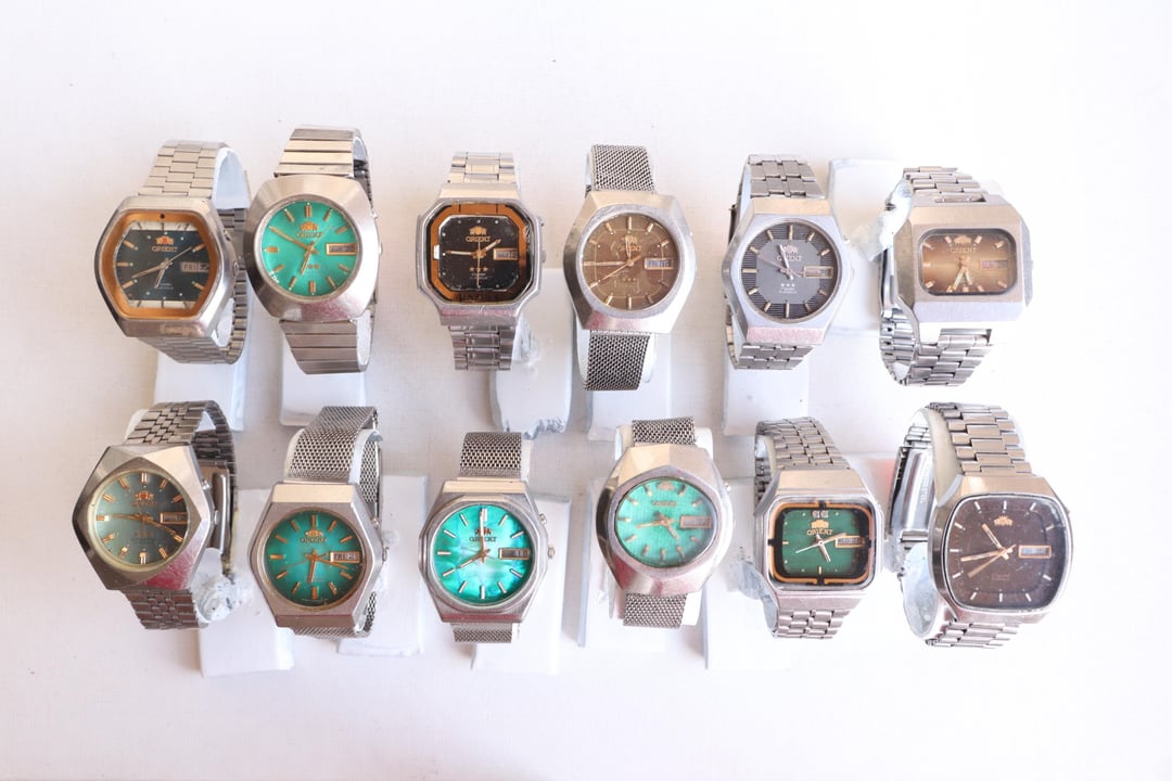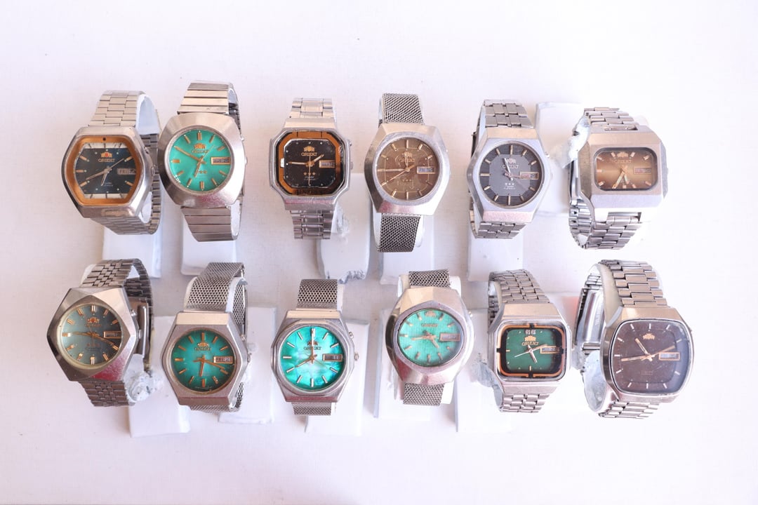 [WTS] Priced to Sell Fast! Rare Set of 12 Vintage Orient Crystal Watches – Auto 21J, Arabic/English Day-Date, TV Dials – Starting $45, Offers Welcome ⌚