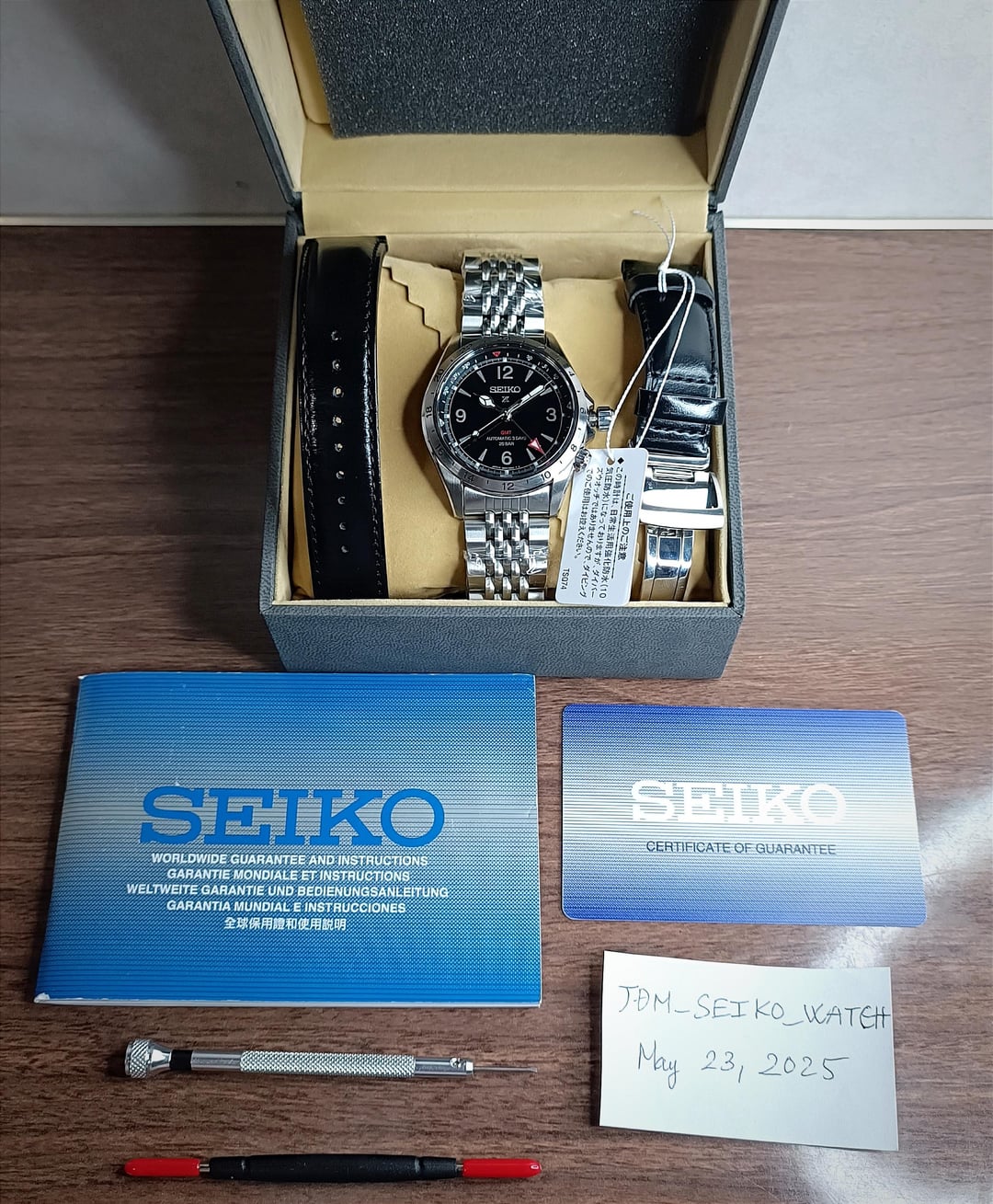 Hello r/Watchexchange, I'm selling the Seiko Alpinist SPB379J1, a beautiful pre-owned piece that comes with two straps: One brand new beads-of-rice stainless steel bracelet, specially made for the Alpinist line One original Seiko leather strap with folding clasp, which is pre-owned but still in excellent condition. This is an impressive model featuring a deep black dial, Seiko’s 6R54 movement with a 72-hour power reserve, 20 bar water resistance, and GMT functionality. Condition: Pre-owned, running well, and in very good overall condition with only a few light scratches from normal use Case size: 39.5mm, Lug width: 20mm Movement: Seiko 6R54, 24 jewels, with GMT function. Runs steadily at around +5 to +15 seconds per day Dial: Beautiful black dial with excellent light reflection Crystal: Sapphire with anti-reflective coating, no scratches Strap: Comes with a new aftermarket beads-of-rice bracelet for the Alpinist line. Also includes the original leather strap and folding clasp, still in very good condition and fits wrists approximately 14–20cm Accessories Included: As shown in the photos This is a rare and sought-after model for Seiko enthusiasts. Photos & Timestamp: Photos:https://imgur.com/a/Mr4DhRs Timestamp:https://imgur.com/a/hk3TmTF Price, Payment & Shipping: Price: $935 (excluding shipping). No trades. Payment: PayPal Friends & Family or Goods & Services (+4.6% fee if using G&S) Shipping: FedEx Express with delivery in 3–4 days. Shipping costs range from $50–$80 worldwide Thank you for your interest!