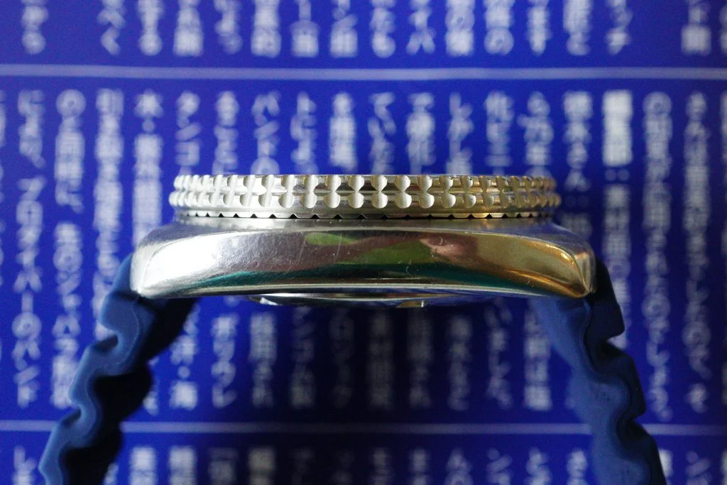 The watch comes on a new original blue Seiko flat vent strap with a pair of new Seiko OEM fat spring bars. Service history & time keeping unknown.