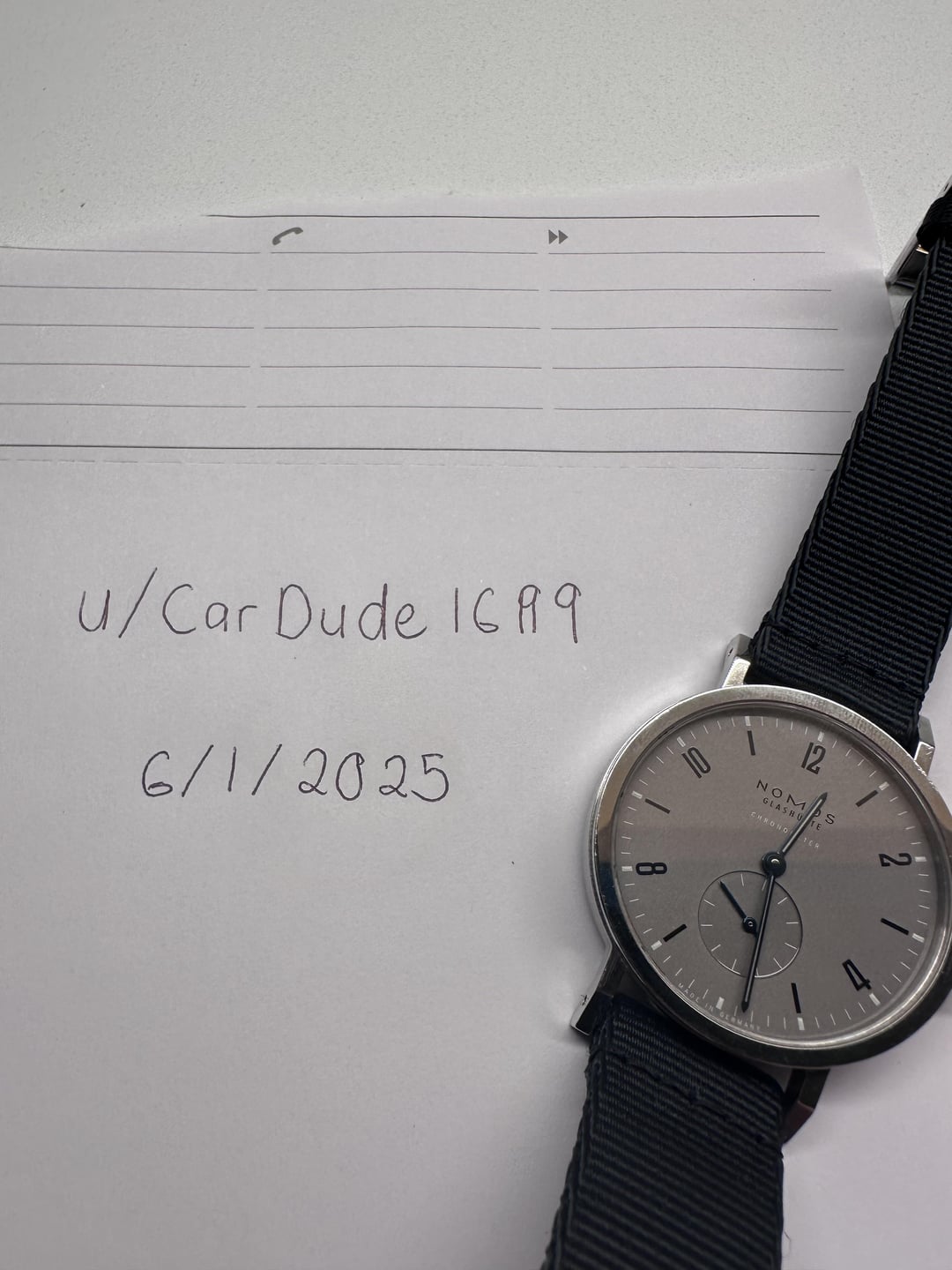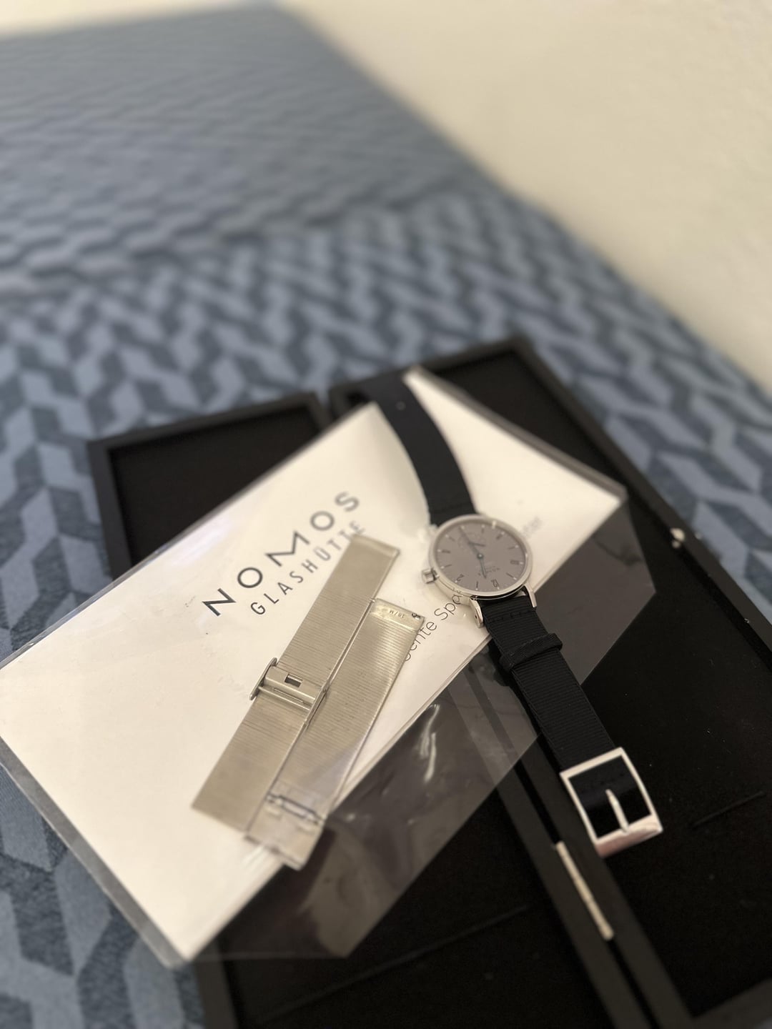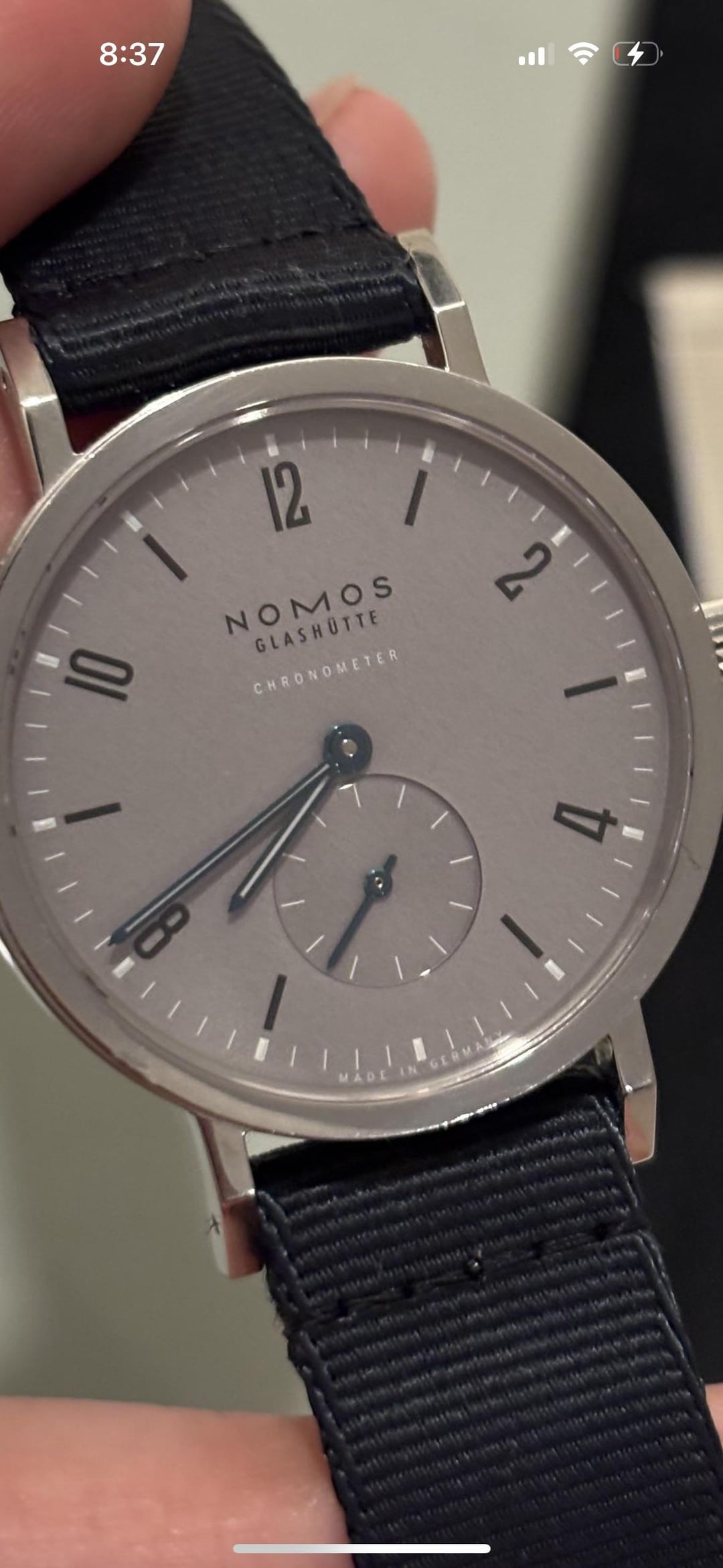 For Sale: Nomos Tangente Sport Hodinkee Limited Edition #10/300 Hi r/WatchExchange, I’m offering my Nomos Tangente Sport Hodinkee Limited Edition, number 10 out of only 300 made, for sale. This is a rare opportunity to own a unique piece from a highly sought-after collaboration between Nomos Glashütte and Hodinkee. Model: Nomos Tangente Sport Hodinkee Limited Edition Serial: #10/300 Condition: 8/10 - dial is flawless but caseback has noticeable scratches from daily wear 36.5mm stainless steel case Manual-wind Nomos Alpha movement Custom Hodinkee grey dial with orange accents Sapphire crystal Comes with original Nomos stainless strap and Hodinkee blue NATO strap Included: Full kit – box, papers, warranty card, and both straps Location: Texas, USA Price: $2,200 - I will cover shipping (insured) PayPal F&F, G&S +3%, Zelle, or bank wire Trades: No This watch is a standout with its minimalist Nomos design, vibrant Hodinkee-exclusive dial, and limited production run. Perfect for collectors or anyone looking for a unique daily wearer. I’ve bought and sold on r/WatchExchange with 10 positive transactions – happy to provide references. Please PM me with any questions or offers. I’m happy to hop on a call or provide additional photos. Serious buyers only, please. Thanks for looking!
