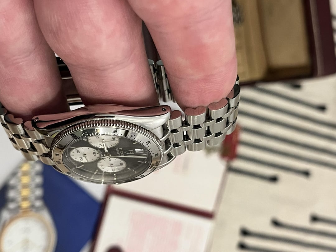 Hi r/watchexchange! Selling a Tudor Monarch 15900 chronograph watch only, The watch has slightly more silver subdials, very little wear/scratches on the watch, as pictured. Please note, this is different than the other Tudor 15900 I have listed for sale, I have two almost identical watches for sale. Bracelet will fit up to an 8” for both wrist. Feel free to reach out with any questions or requests. Asking $2,200.00 shipped insured in the USA, OBO! Thanks for looking!