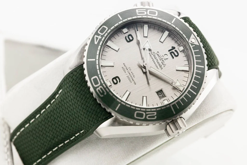Up for sale is a brand new Omega Planet Ocean 600M 8900 43.5mm Grey Dial / Green Bezel on Green Rubber Strap, reference # 215.32.44.21.06.001. It comes complete with all boxes, papers, booklets, hang tag and Omega Warranty Card dated February 2025.