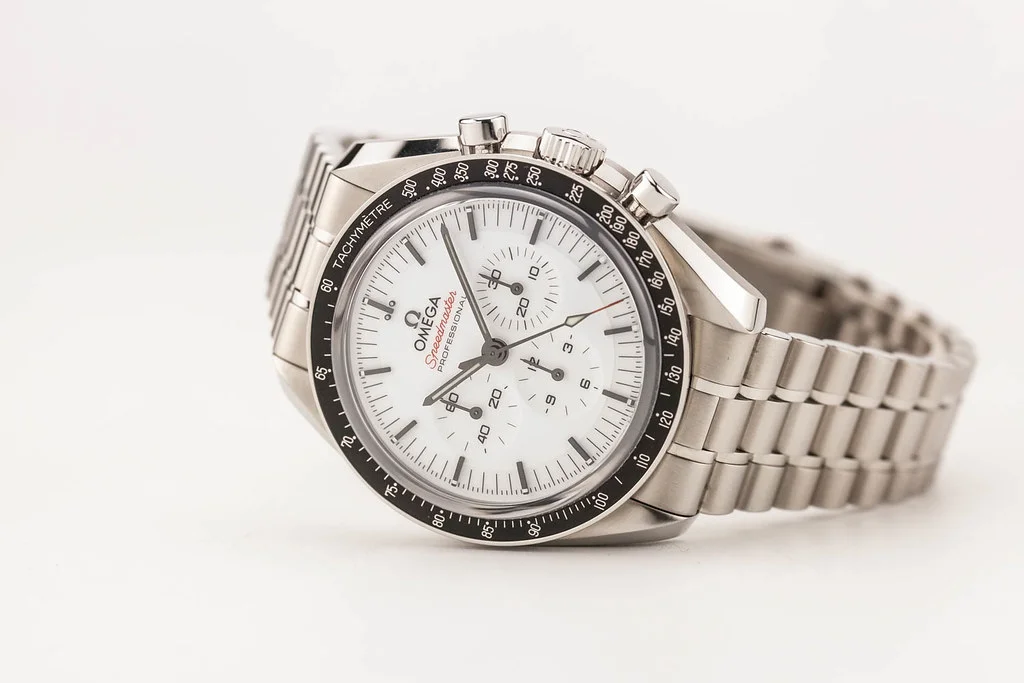 Up for sale is an excellent condition Omega Speedmaster Moonwatch Professional White Dial Sapphire on Bracelet, reference # 310.30.42.50.04.001 It comes with all boxes, papers, booklets and Omega Warranty Card dated January 2025.