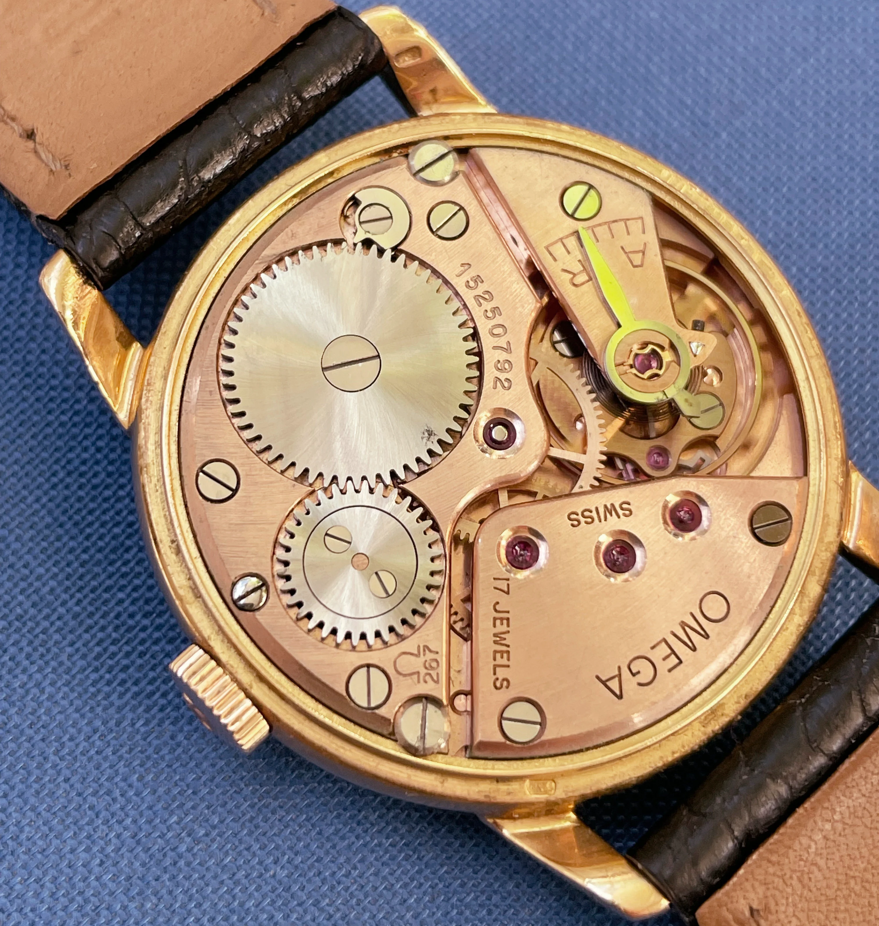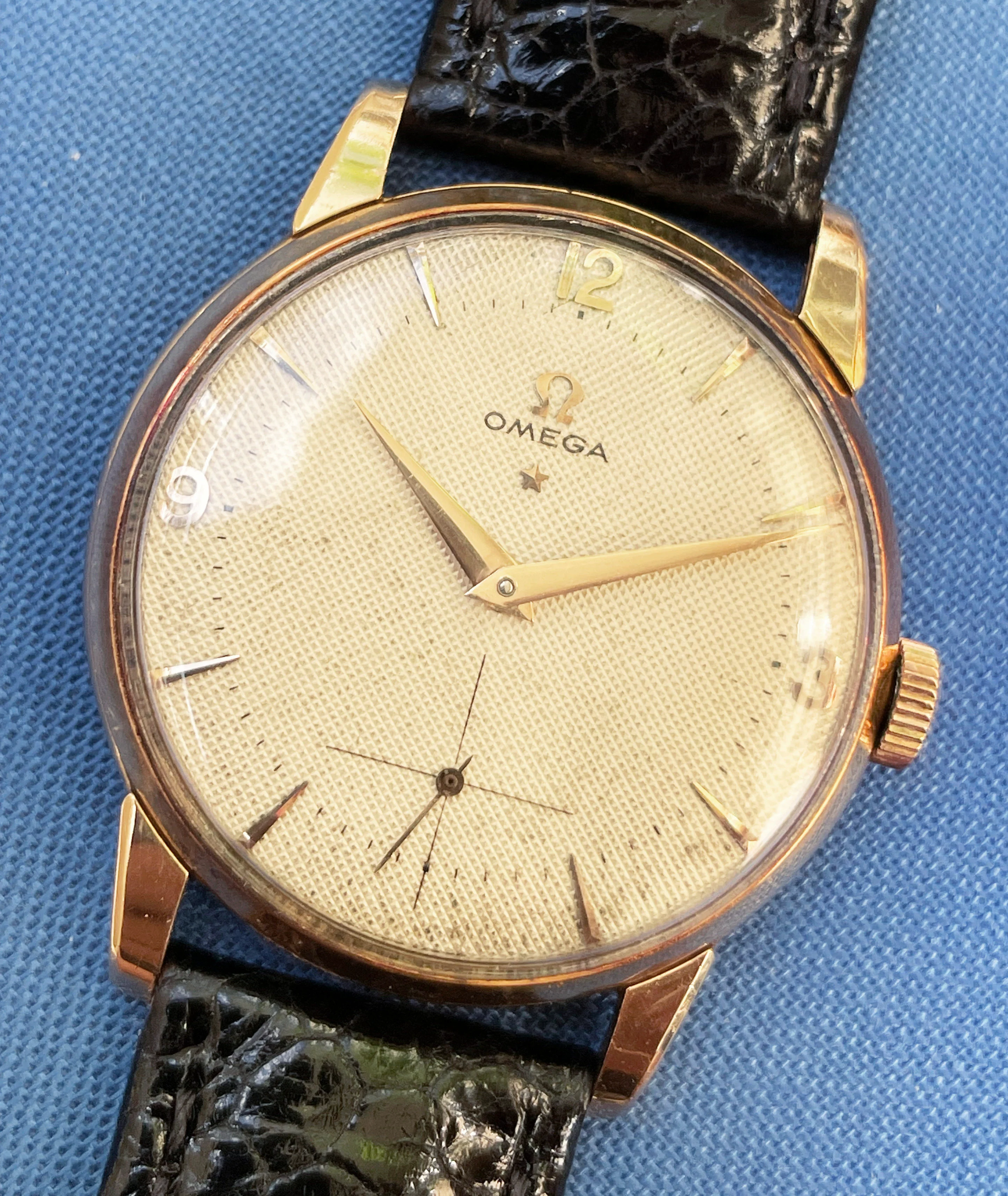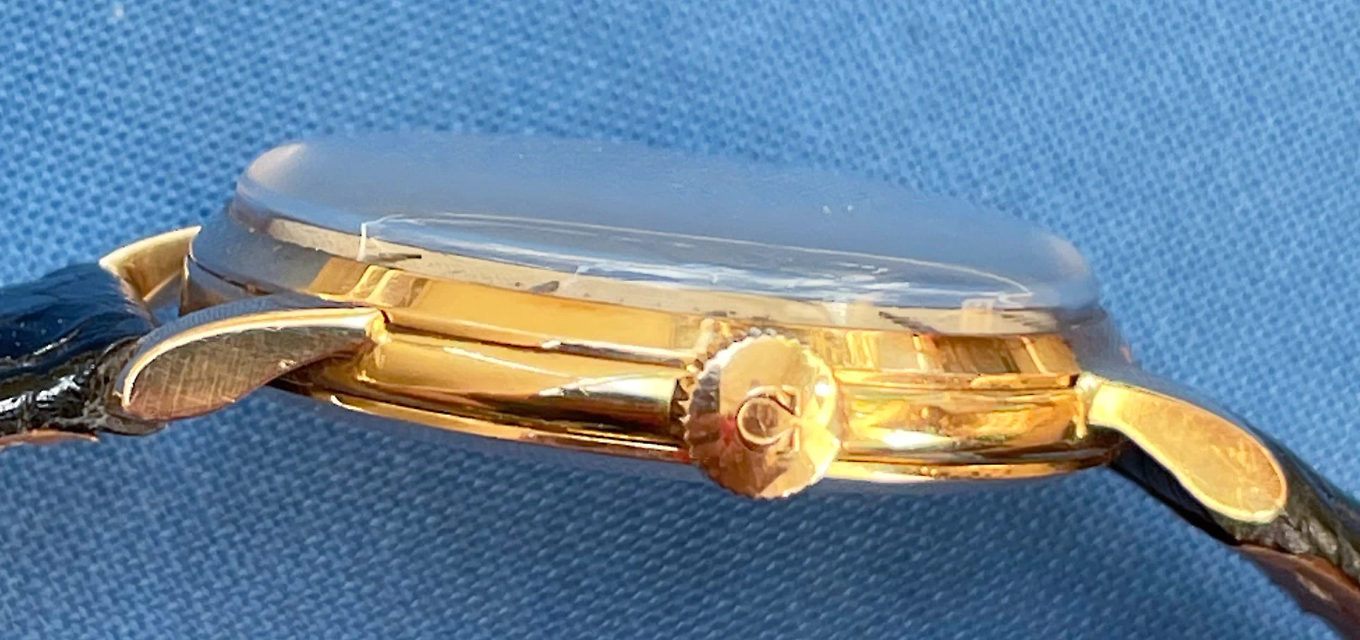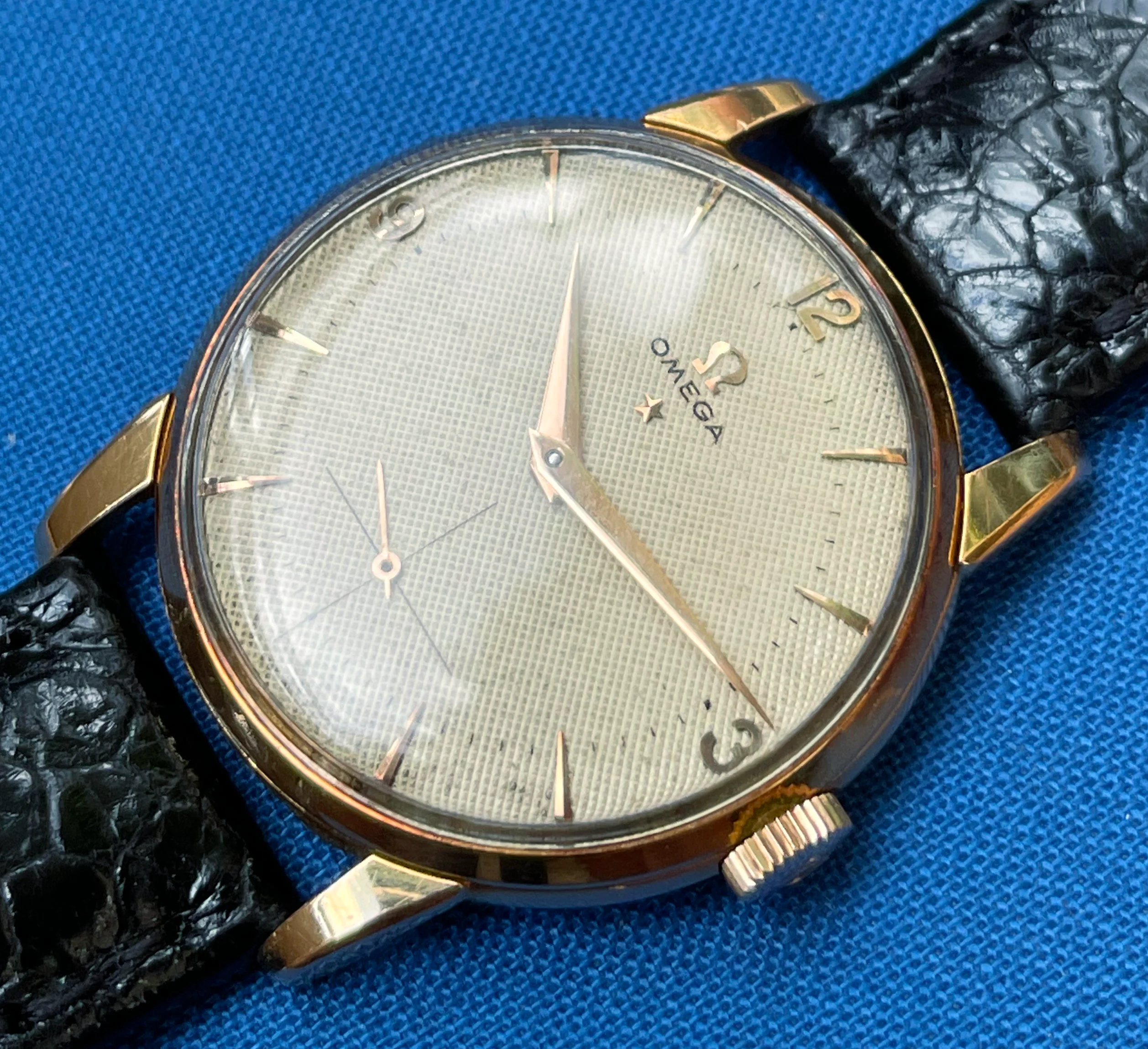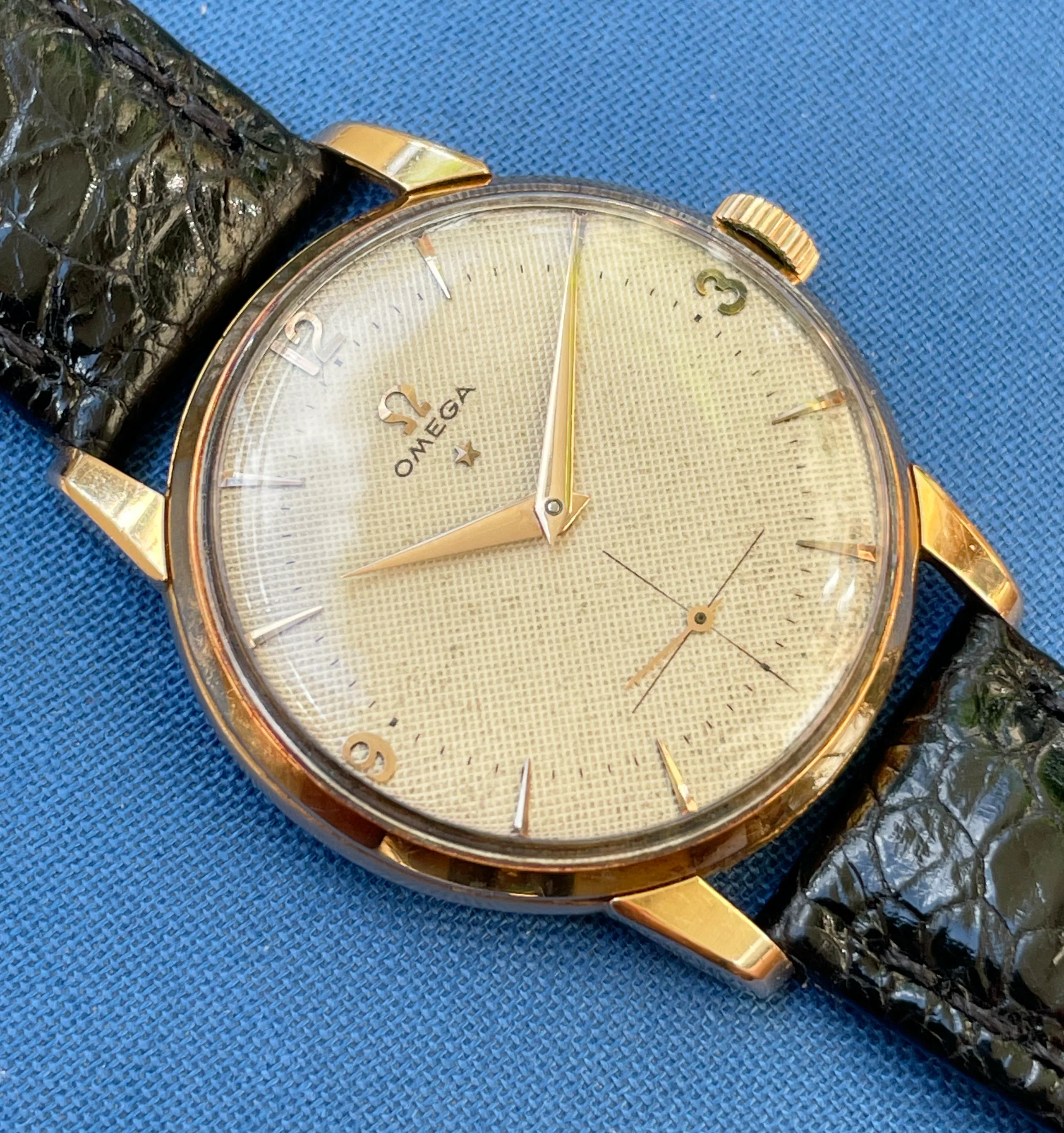 for sale is an Omega OT 2918 in a 33.5mm 18k rose gold case. The condition is nice for its age, with a few signs of wear here and there, but no mistreatment, not polished and of course an original waffle dial, which already has some patina. The little star on it is interpreted in different ways; one nice story, for example, is this: