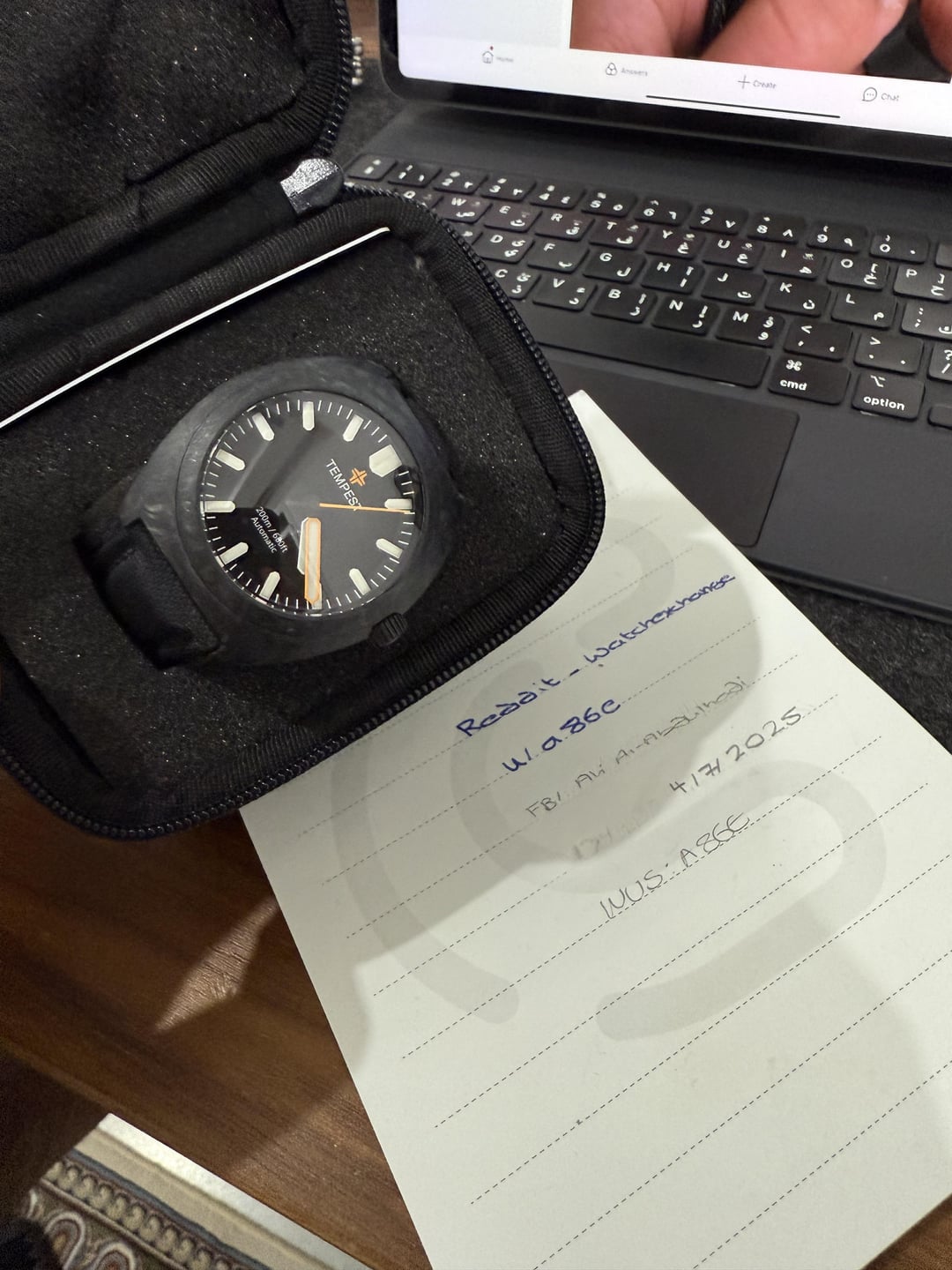 Greeting all Up for sale is the Tempest Forged Carbon Quick specs for those that never heard or seen it Case: Forged Carbon Movement: Miyota 9015 Dial: Black Lume: BGW9 Lens: Sapphire Strap: Nylon Water Res.: 200m Dimensions: 43 x 47.25 mm Thickness: 14.75 mm Lug Width: 22 mm Crown: 7.5 x 4mm screwdown Asking price: $600 shipped TYD, from Kuwait via Fedex Fairly priced No trades Please read the disclaimer before shooting a PM Thanks ⸻ Watch Sale Disclaimer: • I am a private collector, not a store or reseller, and I am not affiliated with any watch brand mentioned in this listing. • The watch will be shipped from Kuwait via FedEx, and a tracking number will be provided to the buyer once dispatched. • Buyer is responsible for any customs duties, VAT, or import taxes that may be charged upon delivery, depending on your country’s regulations. • I welcome all reasonable requests for additional information, including more photos and/or videos to verify the watch and its condition. • Payment terms: • Established Watchexchange members with verifiable feedback may pay via PayPal Goods & Services only, I do not accept Friends & Family nor Zelle • New or low-feedback users must pay via wire transfer. All watches are sold as-is, with details described to the best of my knowledge. Serious inquiries only, please. Thanks for looking