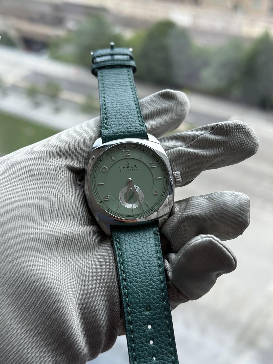 Up for sale is the Farer Mansfield which was purchased in 2024. Comes complete with box, warranty card, and microfiber cloth. Here are some specifications for whom it may interest: - Green tea dial w/ cushion case - Green leather strap - Case size: 38.5mm x 43.8mm x 10.5mm - Movement: Swiss Made Sellita SW216-1 Elaboré Grade movement - Power reserve: 45 hours - Water reserve: 50M Watch is in excellent condition and has been treated with care. Will be shipped CONUS for a total of $850 out of Philadelphia. Willing to meet in person as well if you live in the area. Pics: https://imgur.com/gallery/farer-mansfield-bjlRFPw Timestamp: https://imgur.com/gallery/farer-timestamp-F27tEgE