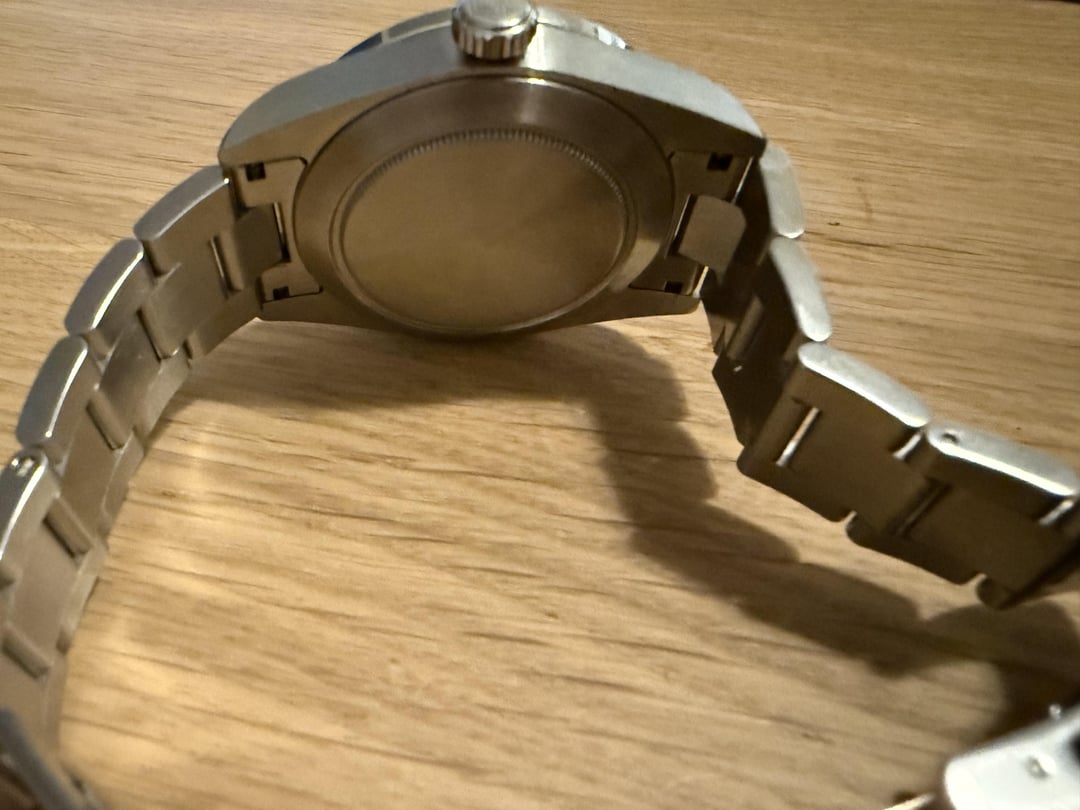 [Timestamp](https://imgur.com/a/QKsuCyS) Black dial with applied indices. Comes with everything, full links, card, hang tag. I don't see any marks on the case, but there is a scuff on the clasp, see the photo. When wearing it daily, it doesn't gain or lose a single second (ymmv). Asking $130/shipped to CONUS with Paypal F&F, or add 3.5% for G&S. Thanks for looking and let me know if you have any questions.