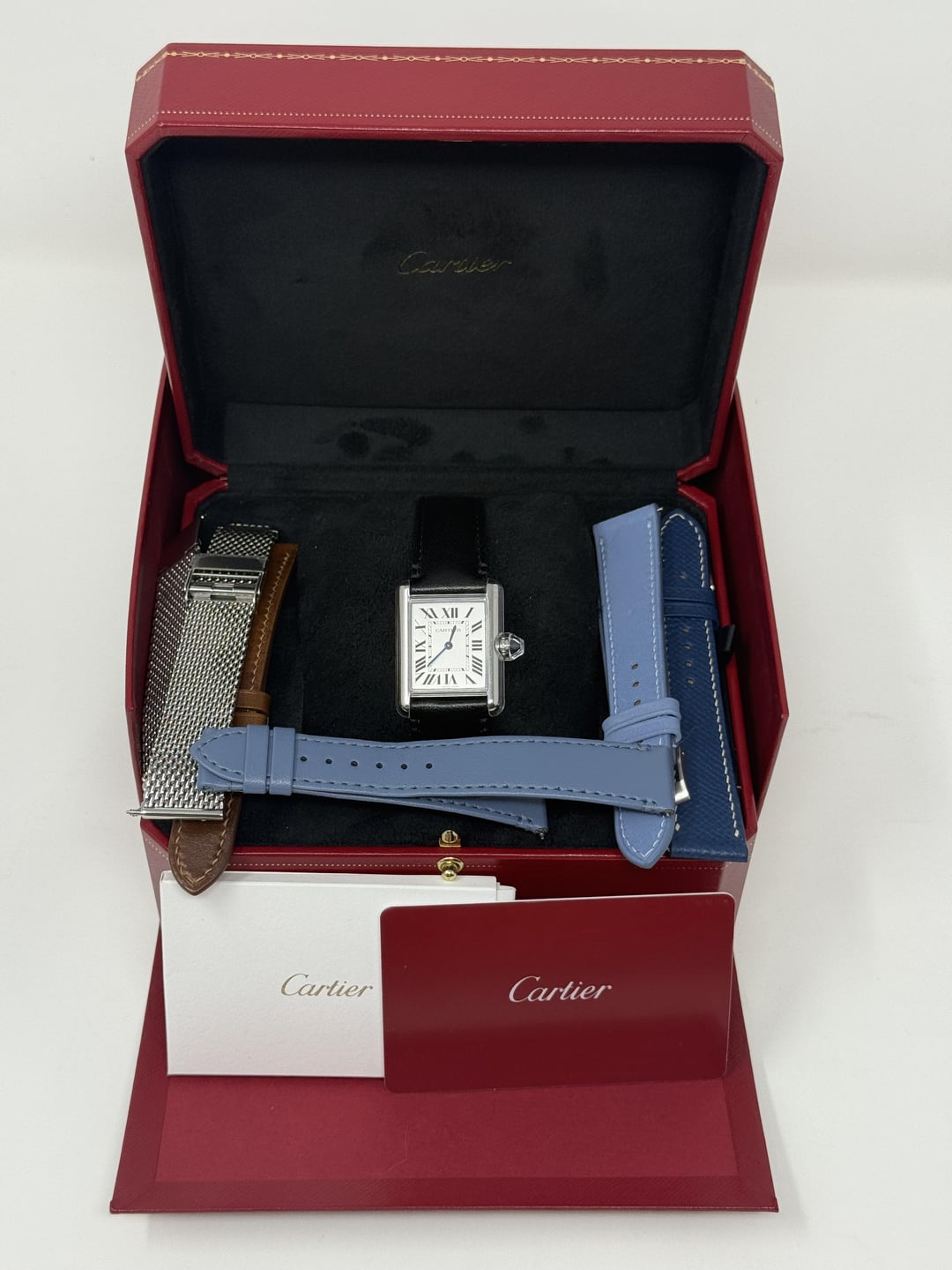 **Condition: Excellent**, watch runs perfectly with a few hairlines on the case. Caseback still has stickers. Watch was purchased in February 2022, which is the date on the warranty card. **Includes: Full Kit + extra straps.** Outer box, inner box, 8 year warranty card, manual, plastic protector. Original Cartier black vegan leather strap, Cartier Blue leather strap, Delugs brown leather strap, Delugs alcantara light blue strap, Delugs Navy blue leather strap, Milanese bracelet. **Price: $3,500 shipping FedEx insured overnight included US only. No trades please.** Accepted payment methods are Bank Wire, Zelle or F2F in NYC. Timestamp: https://imgur.com/a/CXsfF3L Album: https://imgur.com/a/j6tWr2G Happy to show the watch over FaceTime if you are interested.
