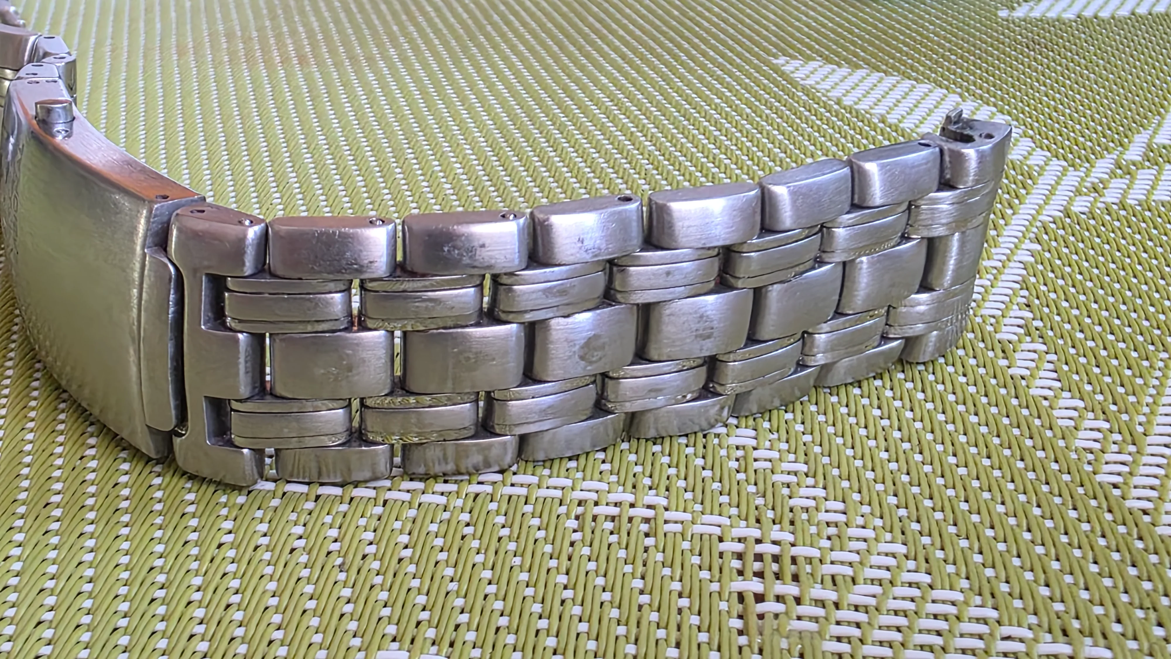 ~ Comes on 5 link Bond bracelet with OEM spring bars and fold over dive buckle with wetsuit extension. There is one half link included in the bracelet for micro sizing. I have a 7-3/4” wrist and it fits comfortably with a pinkie finger of play.