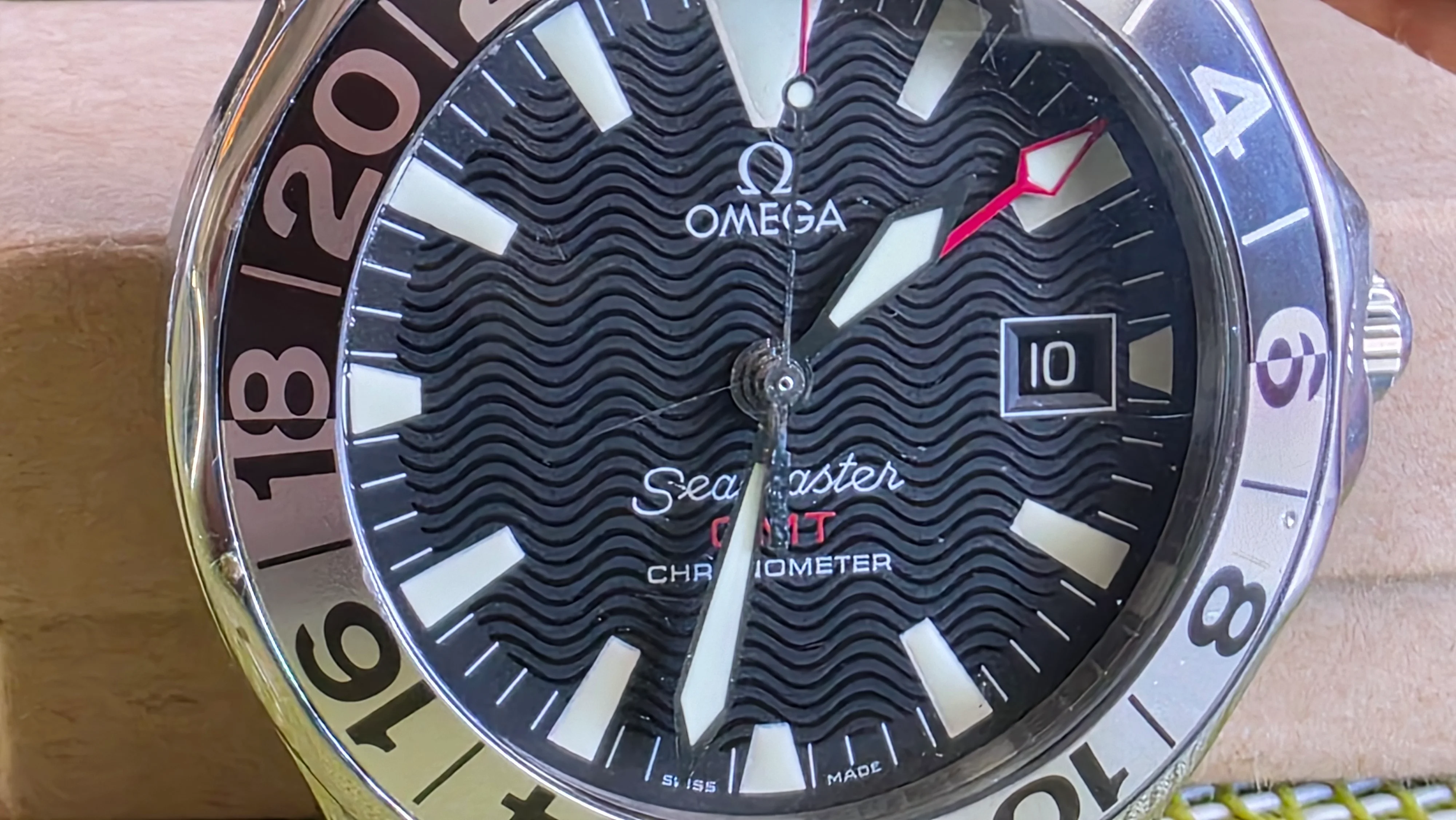 ~ Bezel: 24-hour bidirectional bezel (not unidirectional like the standard dive versions), used in conjunction with the GMT hand to track a second time zone