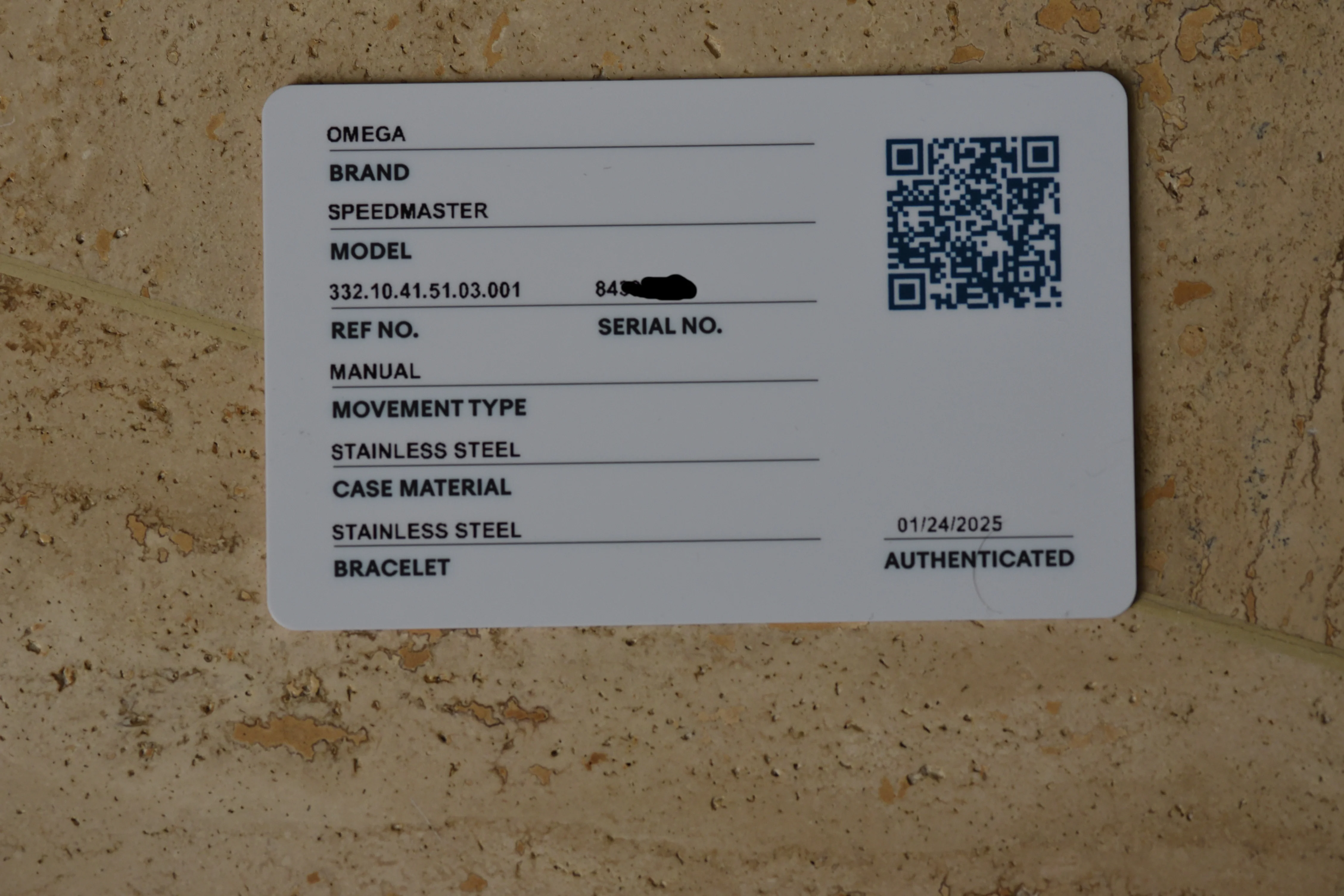 Up for sale is my very nice blue dial Omega Speedmaster 332.10.41.51.03.001 also known as the '57 on bracelet. All complete as shown, with removed links included, all inner and outer boxes, manual and cards. Missing is the Omega warranty card, since the guy I bought it from (off of eBay) originally purchased it from Jomashop in 2024. You do, however, have the benefit of the Jomashop warranty. You won't need it though, as the watch is dead-on balls accurate and everything works great. I just have too many watches, that's all.