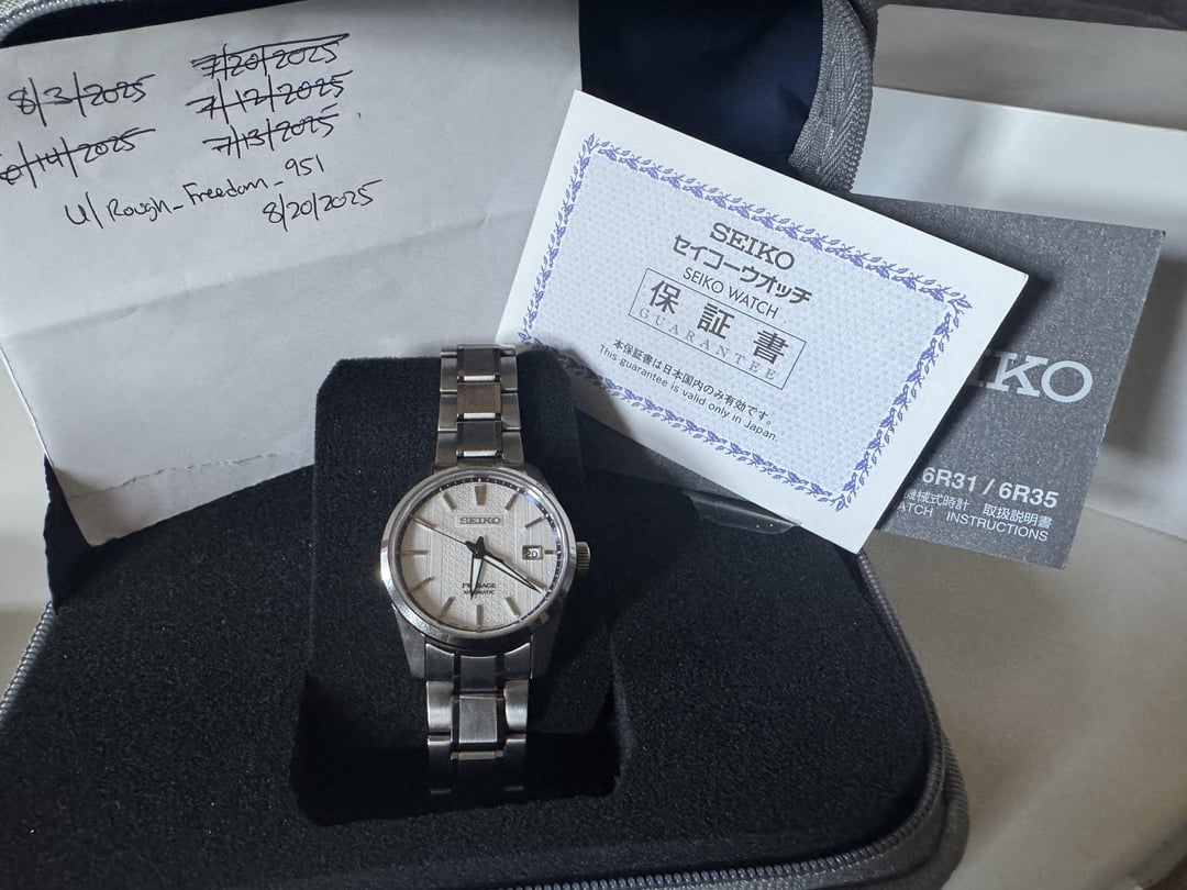 ![[WTS] Seiko Presage Limited Edition Halliburton - Full Kit $750 shipped 3](https://cdn-cf.watchpatrol.net/600x600/img/full/3d8b3febd49e088a646a7be8247961dd31aa2715.jpg)