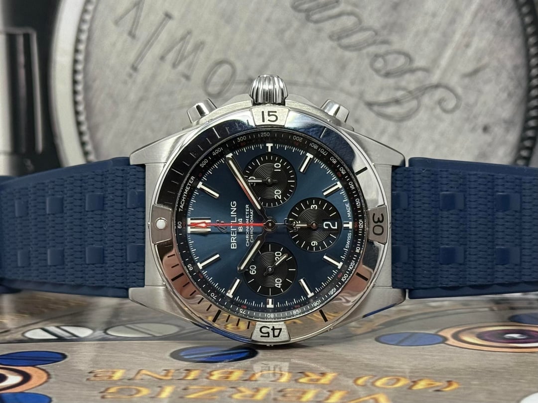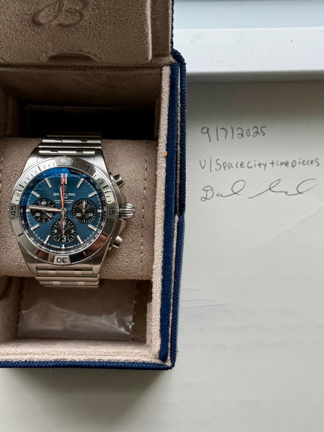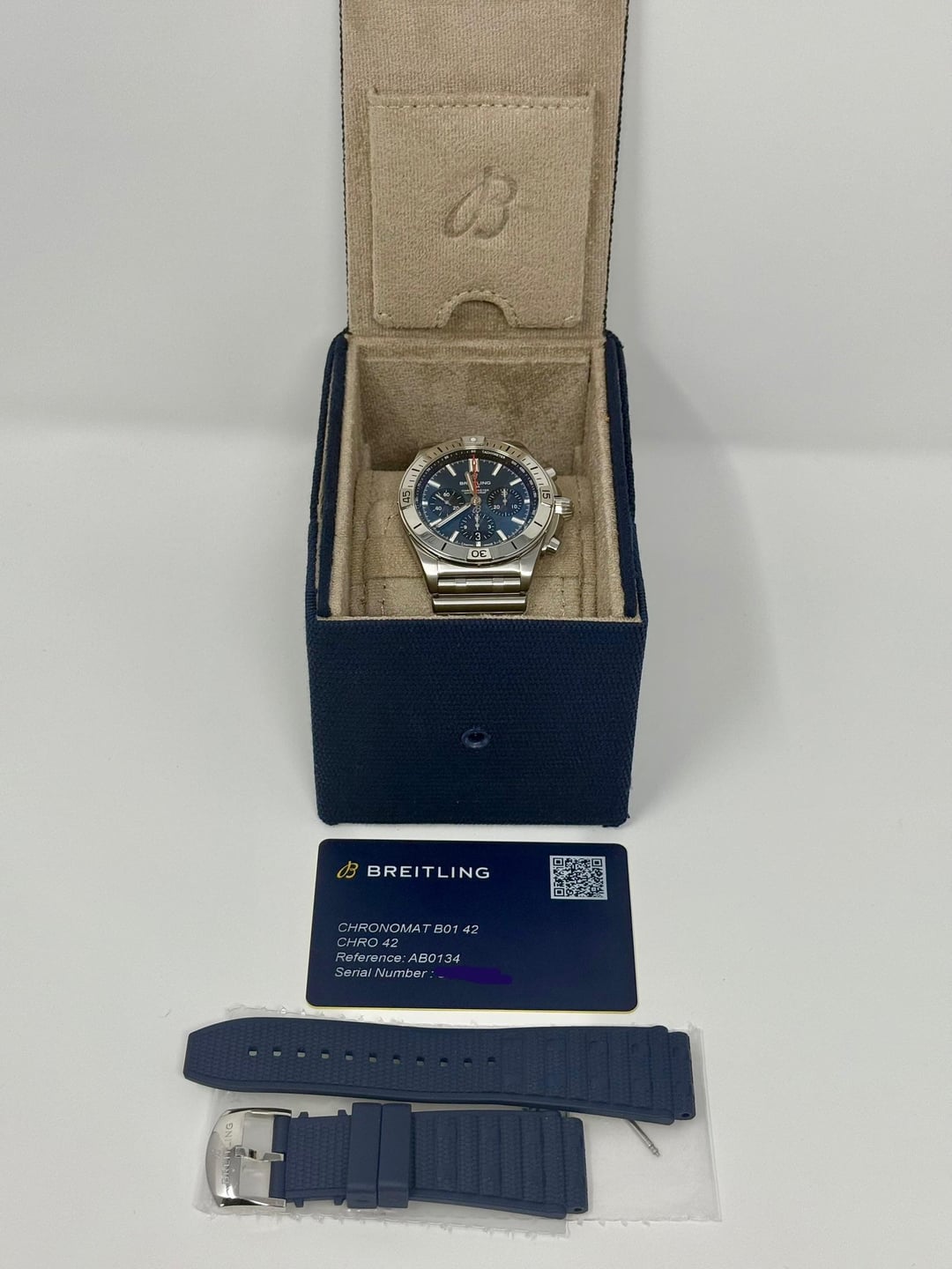 [WTS] 2024 Breitling Chronomat B01 42 – Blue Dial (Ref. AB0134) – Mint, Unsized Bracelet, Extra Rubber Strap – $5,800 (MSRP $9,250)