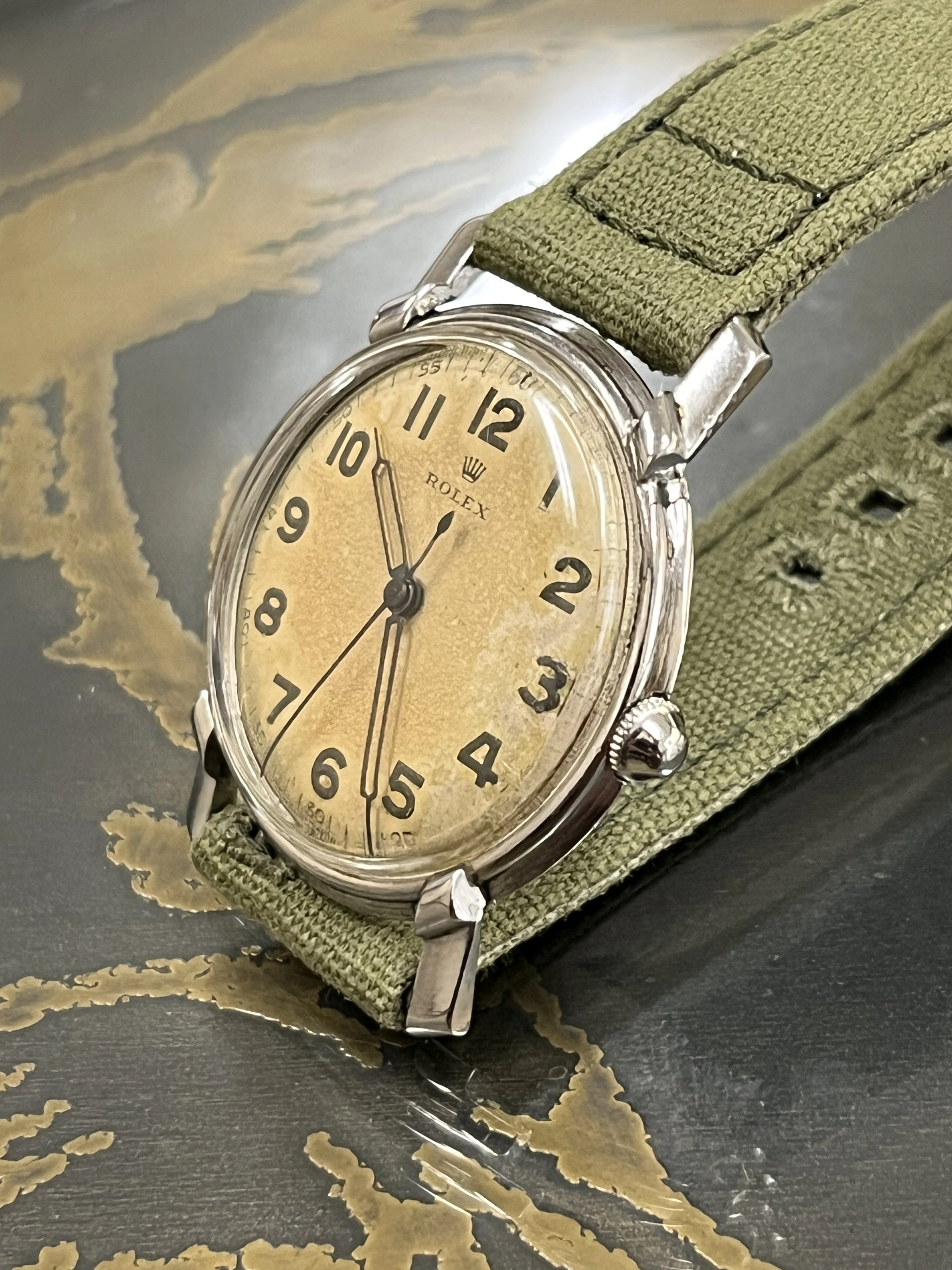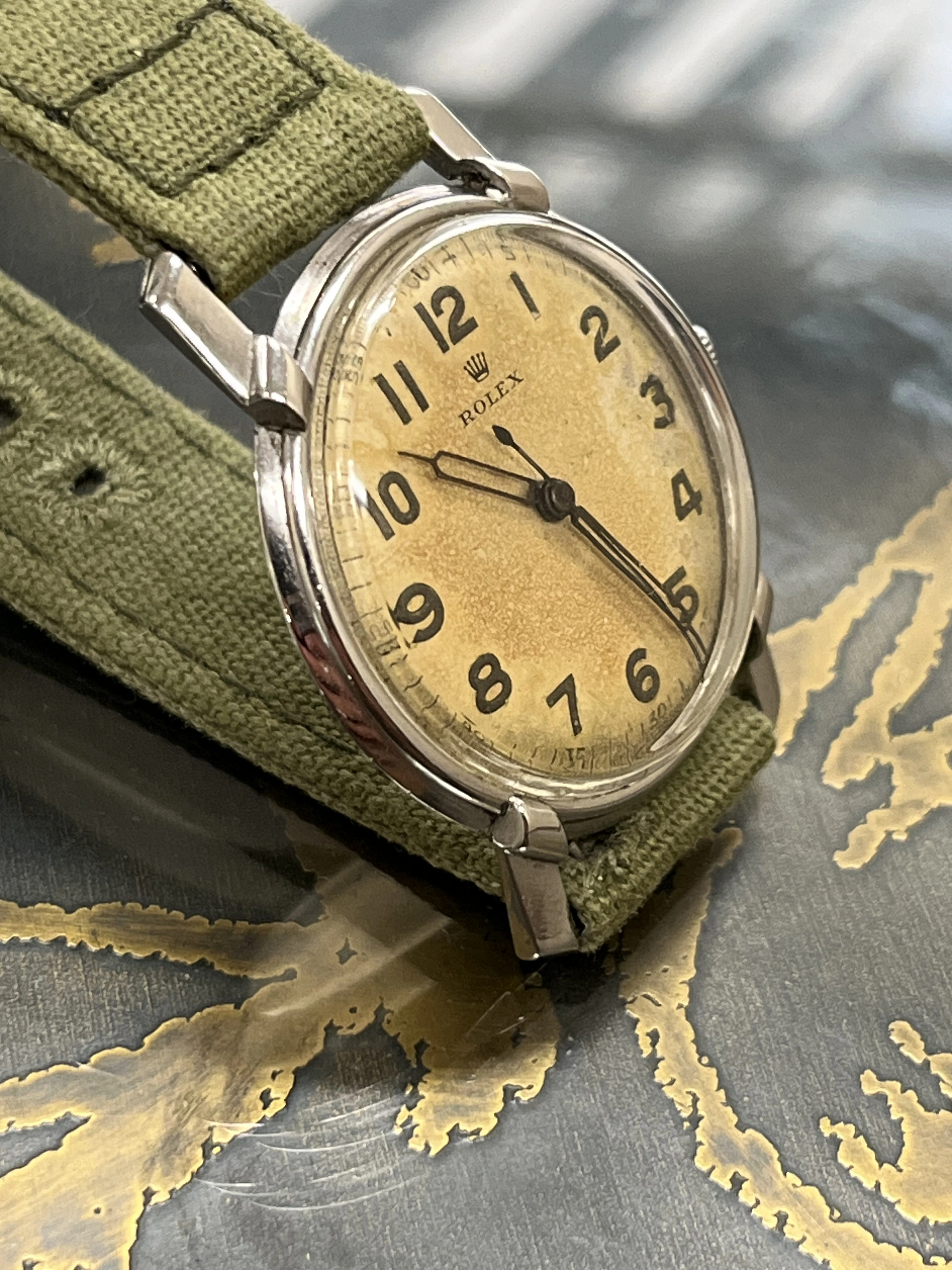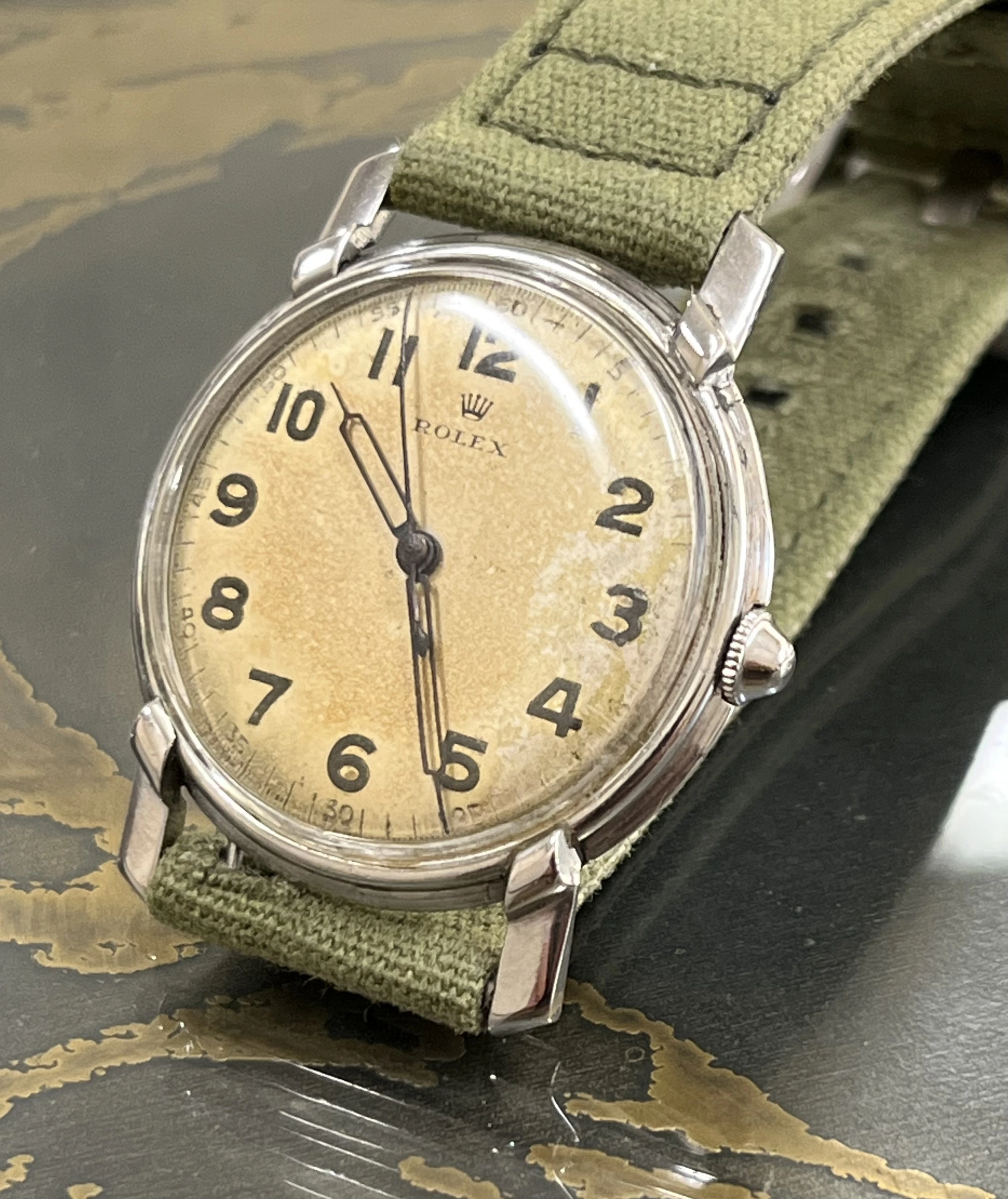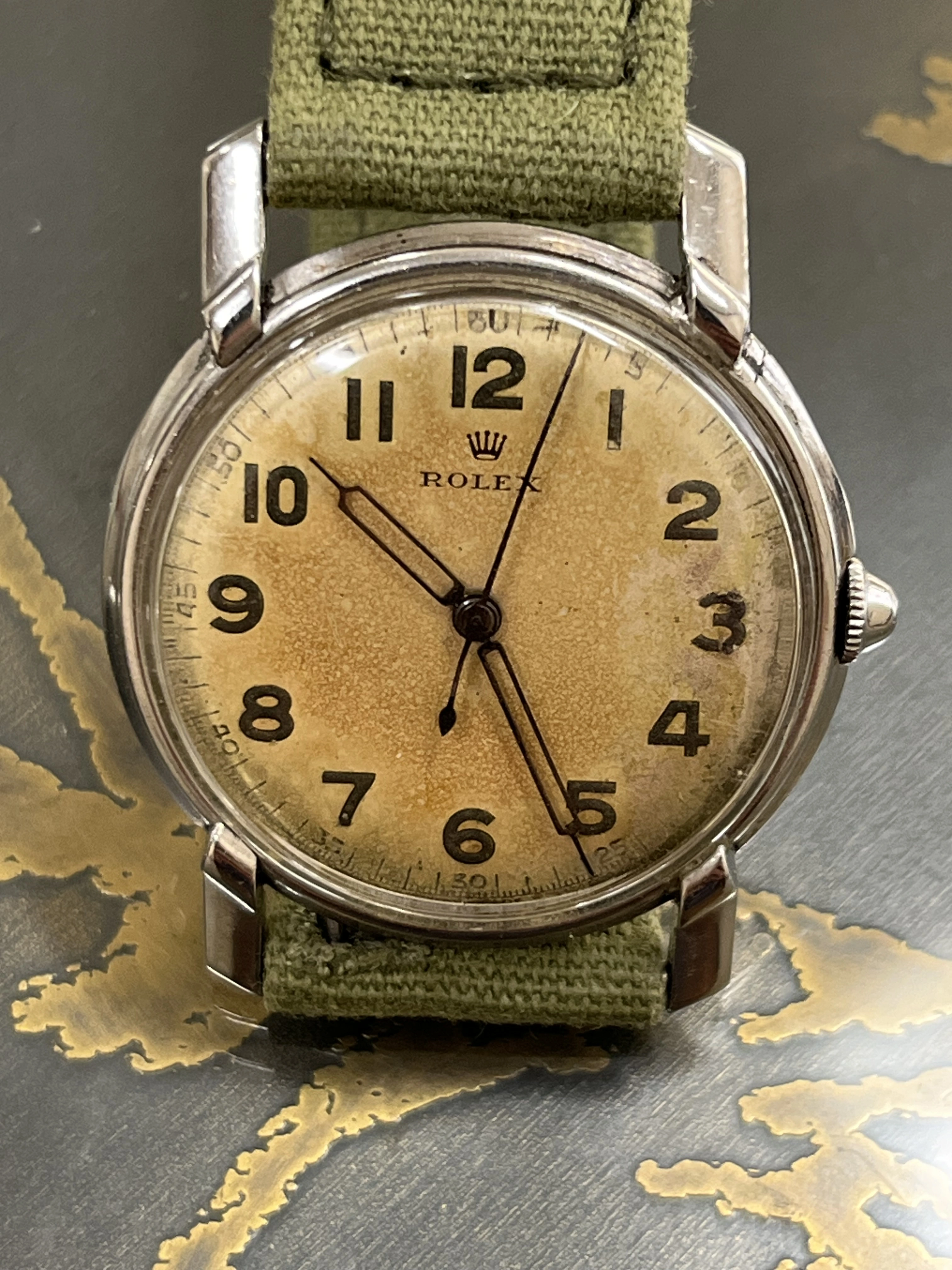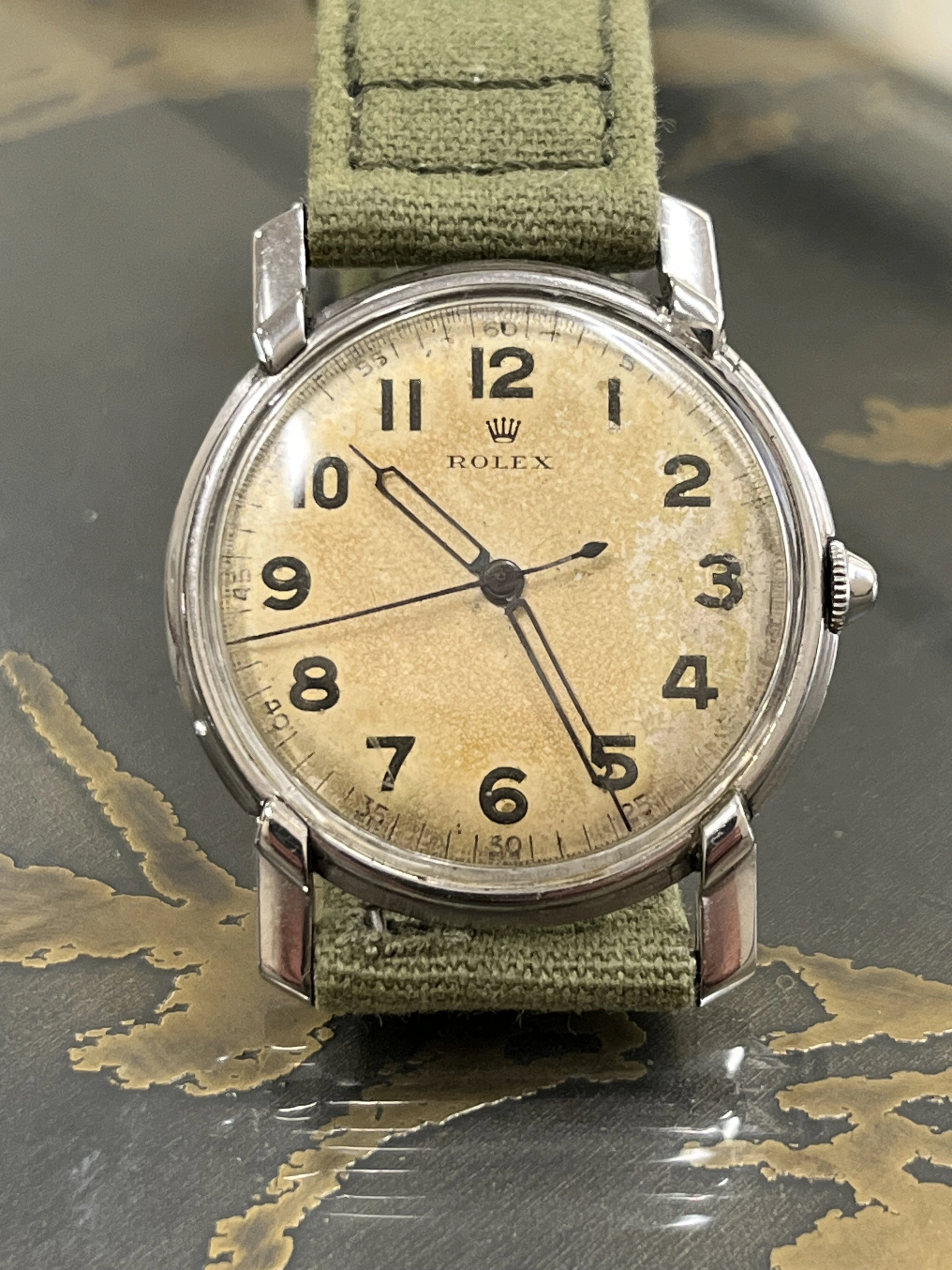 Hello up for sale is a seldom seen Rolex 4315 in non-oyster case. I’ve been told that these non-oyster case serials don’t conform to known serial charts, but this watch looks to me to be from the World War II era.