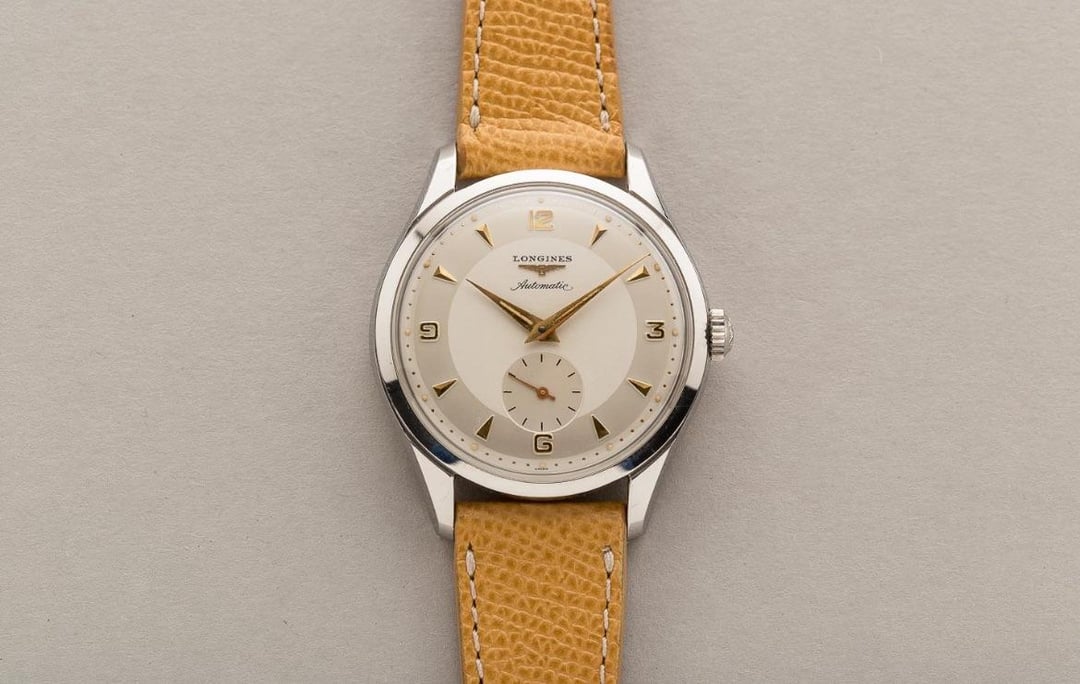 For sale : Vintage Longines Sub-second Automatic Watch This piece was originally purchased from Shuck The Oyster, a vintage watch dealer based in Berlin. [Original listing](https://www.shucktheoyster.com/portfolio/longines-vintage-automatic-watch-6664-3/) Product Description: * Brand: Longines * Model: Sub-second * Reference: 6664 * Year: Invoiced on 12 March 1958 to the company Terrase, which was at that time Longines agent for Sweden & Norway * Movement: Automatic * Case Material: Stainless Steel * Caliber: Cal. 22A * Size: 35mm * Lug width: 18mm * Straps: Brown leather strap * Box & paper: None * Condition: Original immaculate two-tone dial with copper tone hand set and applied indices. Very little wear on the case & on acrylic crystal. Full stainless case with screw down case back. I believe the case is unpolished, except the case back lightly polished in the past. The movement is very clean & running well, however the service history is unknown. What makes this timepiece exceptional: Caliber 22A, which powers this watch, is the first automatic movement manufactured by LONGINES, put on the market in 1945. This caliber, which at the time represented a break with the principles of watchmaking construction used until then by the company, is characterized by a bi-directional rotor operating the winding in both directions, a feature found on most automatic movements today. The exceptional condition of the piece, featuring an original immaculate dial. What makes Cal. 22A so special : [The Coup No One Speaks About - Longines First Automatic Movement ](https://goldammer.me/blogs/articles/longines-first-automatic-history?srsltid=AfmBOoqq44qCHawdYT3AkV8MZu-T11CqSQFAEqlef4S4McGaMbizZA-C) Price : $1,550 with free conUS shipping. Payment via Zelle, Venmo, Wire, PayPal FF or G&S (+3.5% fee). Let me know if you have any questions, thank you. [Albums](https://imgur.com/a/UqaiGny) [Timestamp](https://imgur.com/a/LFi71LS)
