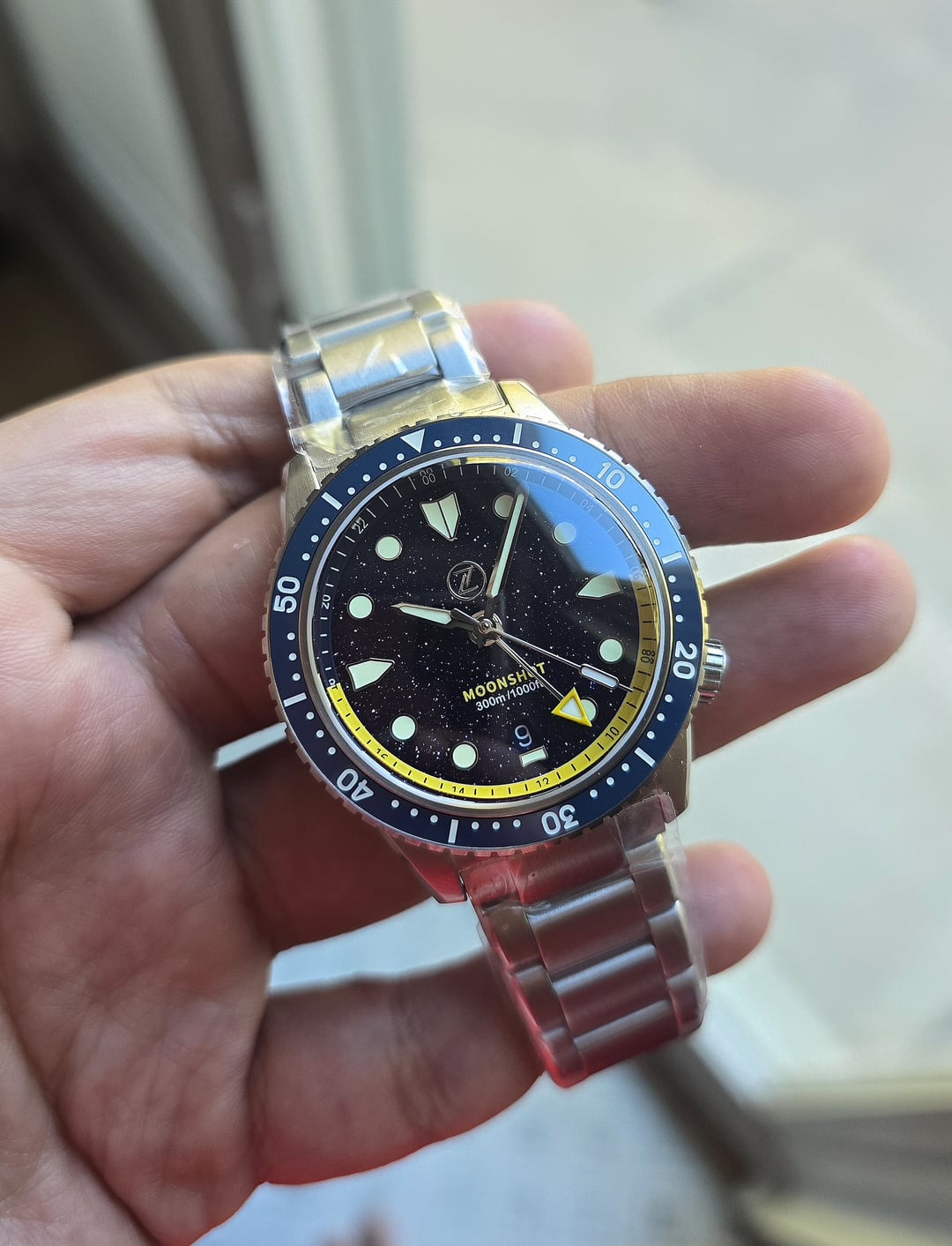 Hey Watchex, selling this very cool Zelos Mako Moonshot GMT. This was a collaboration between Zelos and the Watches@ group, resulting in the production of 180 special edition timepieces featuring an aventurine dial. As always with Zelos, this watch packs incredible value with a true GMT movement, fantastic bracelet with quick release spring bars+quick adjust and 300m of water resistance. The caseback is engraved with a custom graphic of Astronaut Stan the Mountain View T-Rex on a Le-Petit-Prince-style Moon roaring at the Earth. Condition: LNIB. Bracelet/caseback still have stickers on. Comes with the full kit including a 3 watch travel case+metal warranty card. Album: [https://imgur.com/a/RMnNFoo](https://imgur.com/a/RMnNFoo) Timestamp: [https://imgur.com/EVBpozS](https://imgur.com/EVBpozS) Specs: Case Size - 40mm Lug-to-lug - 46mm Lug width - 20mm Movement - Miyota 9075 Bezel - Ceramic Crystal - Sapphire Water resistance - 30ATM Price: $600 shipped CONUS via UPS/USPS. Prefer Venmo/Zelle but I will accept PayPal from members with history (+4% for PP G&S). Not looking for trades. Thanks for looking!