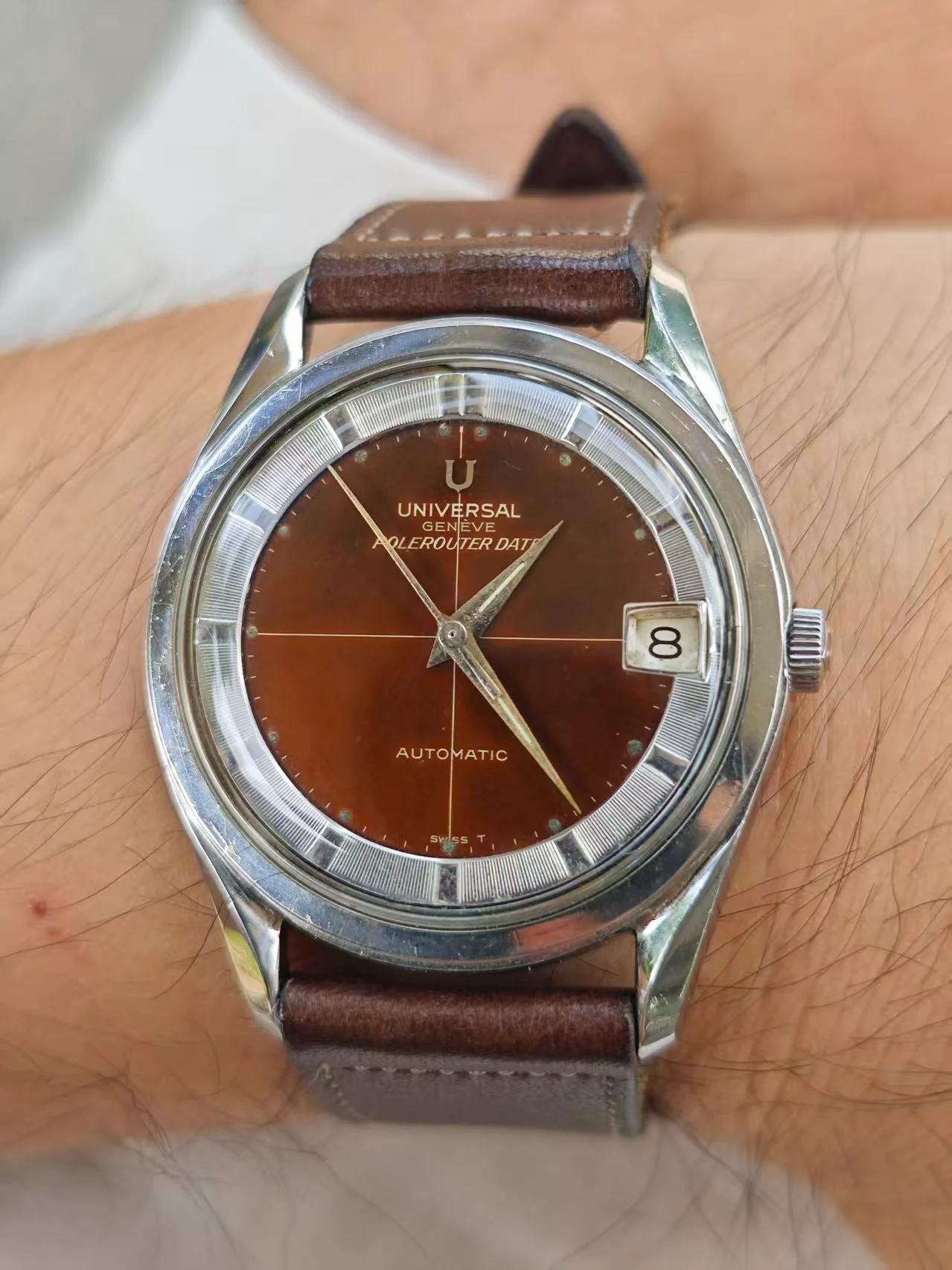 | Universal Geneve Polerouter Date Stainless Steel 34mm Tropical Dial Auto Watch denverwatchexchange (1082) |