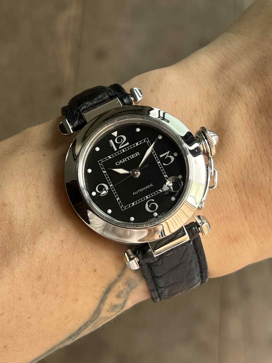 **Hello WatchExchange!** Shipping into the US has gotten tricky last month — new import taxes kicked in Sept 1. I’ve been selling internationally for years and I’ve just found a new express option: **3–5 business days to the US with no more than $25 in duties per watch.** That’s about as smooth as it gets right now without raising my prices. I’m looking for sales only (no trades this time). Price is firm. **Photos:** I shoot under harsh lighting so you see every bit of wear. On wrist, these look much better. **Today’s watch**: Cartier Pasha C Ref.2324 Limited Edition * All steel, 35x35mm case * All parts original * Automatic movement, excellent condition * Case: no wear to mention * Crystal: spotless * Dial: tapestry dial, clean — see photos for how it plays in different lighting * Strap: brand new Cassis genuine alligator with Cartier deployant buckle * Fits most wrists, best on larger sizes * Watch only **Price: $1950++** * Worldwide shipping $50 * US duties capped at $25/watch * Buyer covers 3.5% PayPal invoice fee **Payment & Shipping** I ship express from Bangkok, Thailand. Parcels are marked down and declared as gifts. Over 50+ watches safely delivered worldwide. PayPal invoices or Wise wire — everything documented for both our protection. Thank you for looking! \- Tiger