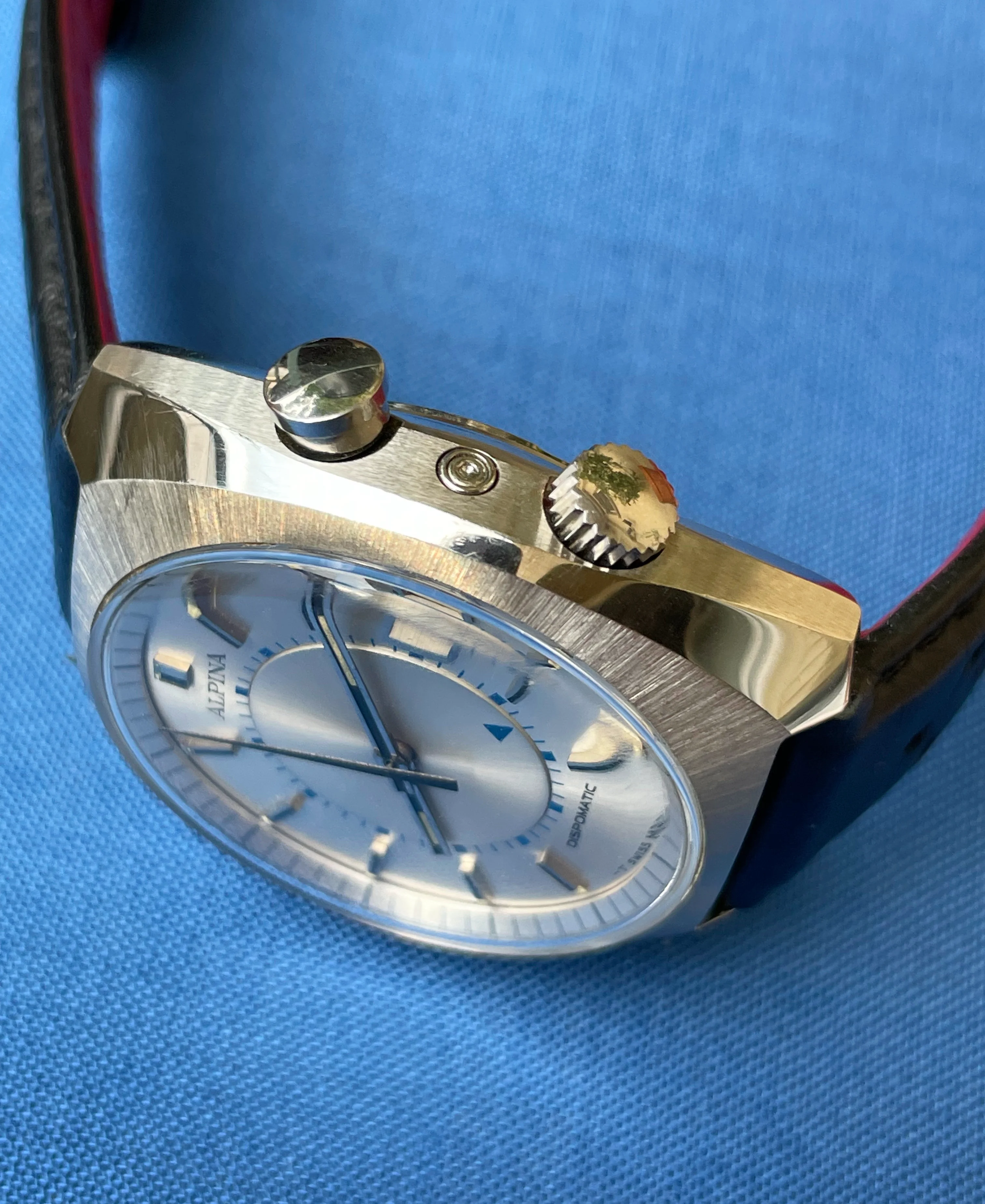 So you could say that this is an Omega with a few details that are different. The most important thing is that, unlike the Omega Memomatic, the alarm time cannot be set to the minute on an extra scale.