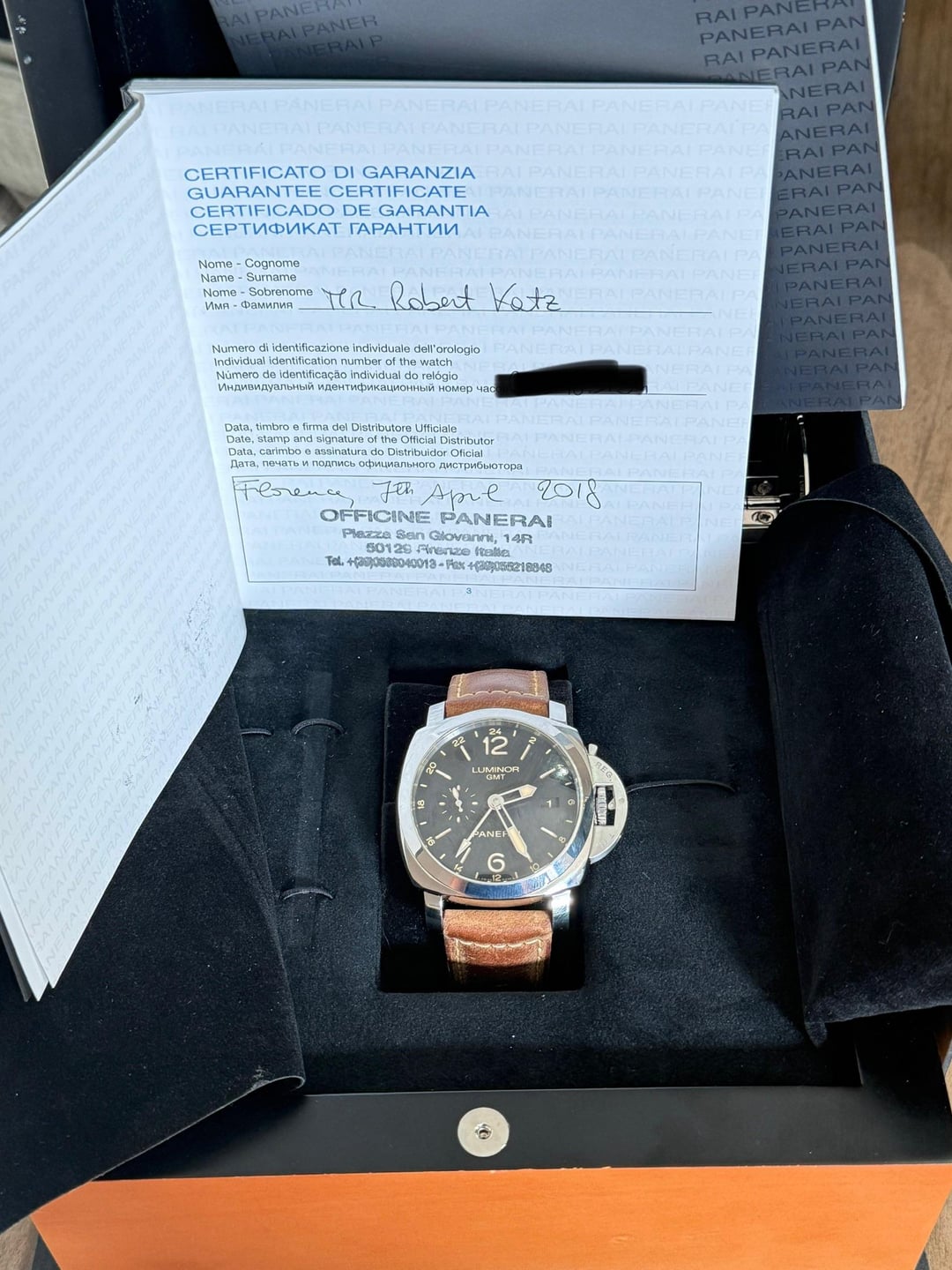 FS PAM00531 Luminor 24 hr GMT “Acciaio” This comes with box and papers dating 2018 Excellent preowned condition running beautifully 4,450 + L