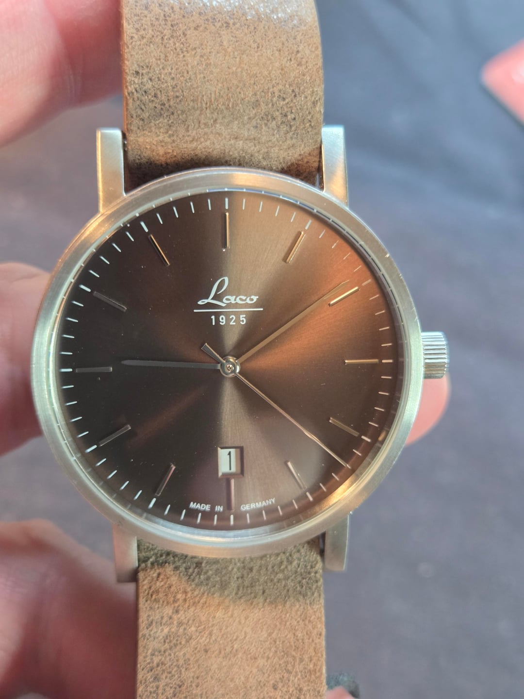Sold out, limited edition Bauhaus style Laco 15 Classics "Mocca" with a beautiful brown sunray dial and Laco 15 movement based on the Miyota 9015 Hi beat. ref.862077 Full kit in like new condition (see photos). Timestamp: [https://www.dropbox.com/scl/fi/bbjhpll1u0dg1m9jaql05/20251101\_191856.jpg?rlkey=6ruesr48n993kkarw6mcnojb7&st=rw7q0ghy&dl=0](https://www.dropbox.com/scl/fi/bbjhpll1u0dg1m9jaql05/20251101_191856.jpg?rlkey=6ruesr48n993kkarw6mcnojb7&st=rw7q0ghy&dl=0) Photos and video: [https://www.dropbox.com/scl/fo/w8ec2zodc962r9zseike4/ANZNWopgLsaVfxo7ldKiTrI?rlkey=rvh9ix6981r4gv428fr69ejcy&st=r192scwv&dl=0](https://www.dropbox.com/scl/fo/w8ec2zodc962r9zseike4/ANZNWopgLsaVfxo7ldKiTrI?rlkey=rvh9ix6981r4gv428fr69ejcy&st=r192scwv&dl=0) $400 shipped CONUS or international at buyers expense. Payment accepted via Zelle, Venmo, PayPal FF (or G&S for buyers with strong history and will cover fees.) Located in Fort Collins, Colorado. In person sale is welcome if you're nearby. I'm new to selling on Reddit but have lots of references for buy/sell/trade on Facebook watch groups you might also be in and 25 years of selling on eBay with 100% positive feedback. Trimming down my collection so trades are unlikely. Happy to do a video call or answer any questions.