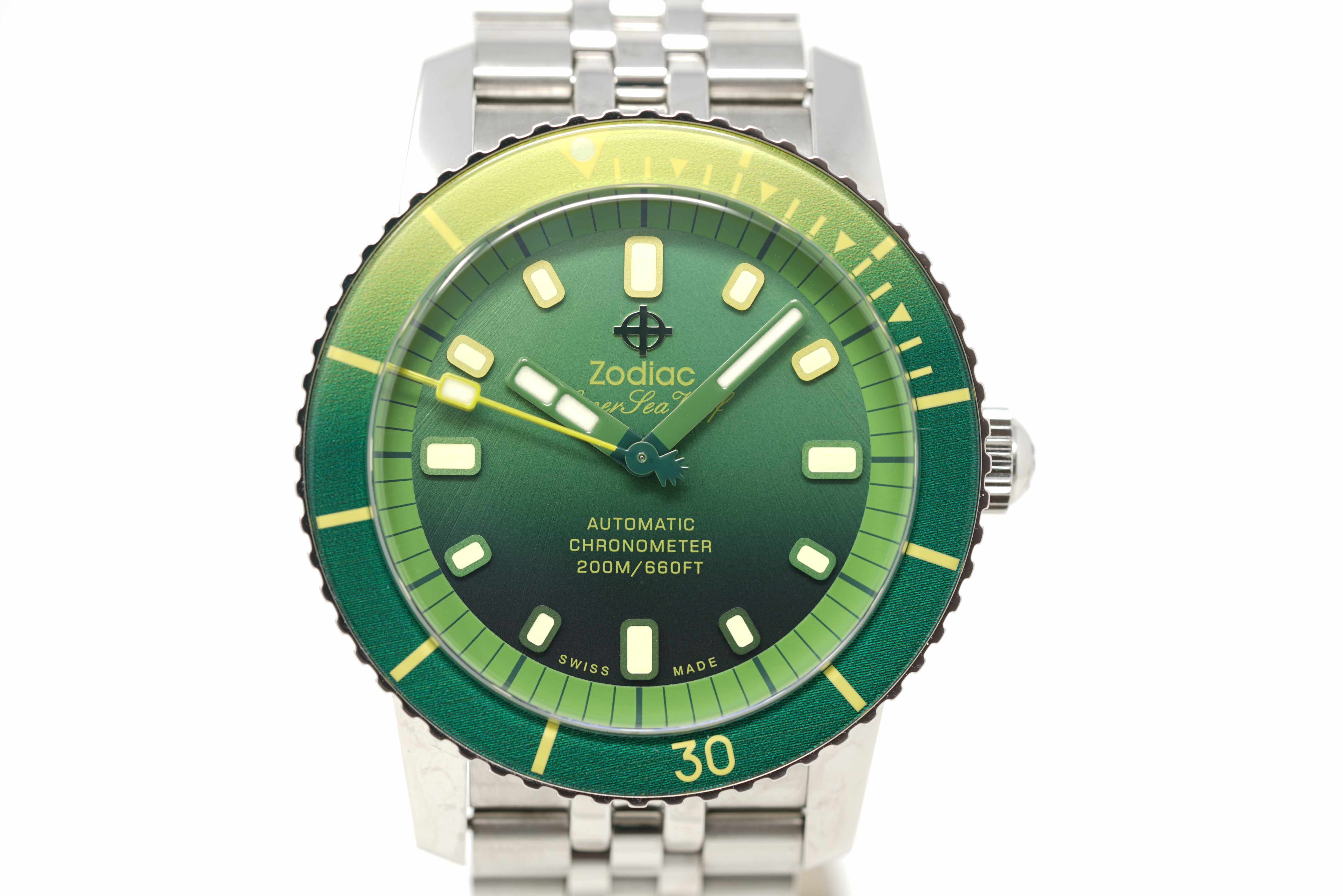 | Zodiac Super Sea Wolf Compression Diver Automatic Green Silver Watch ZO9310 darkbear (518) |